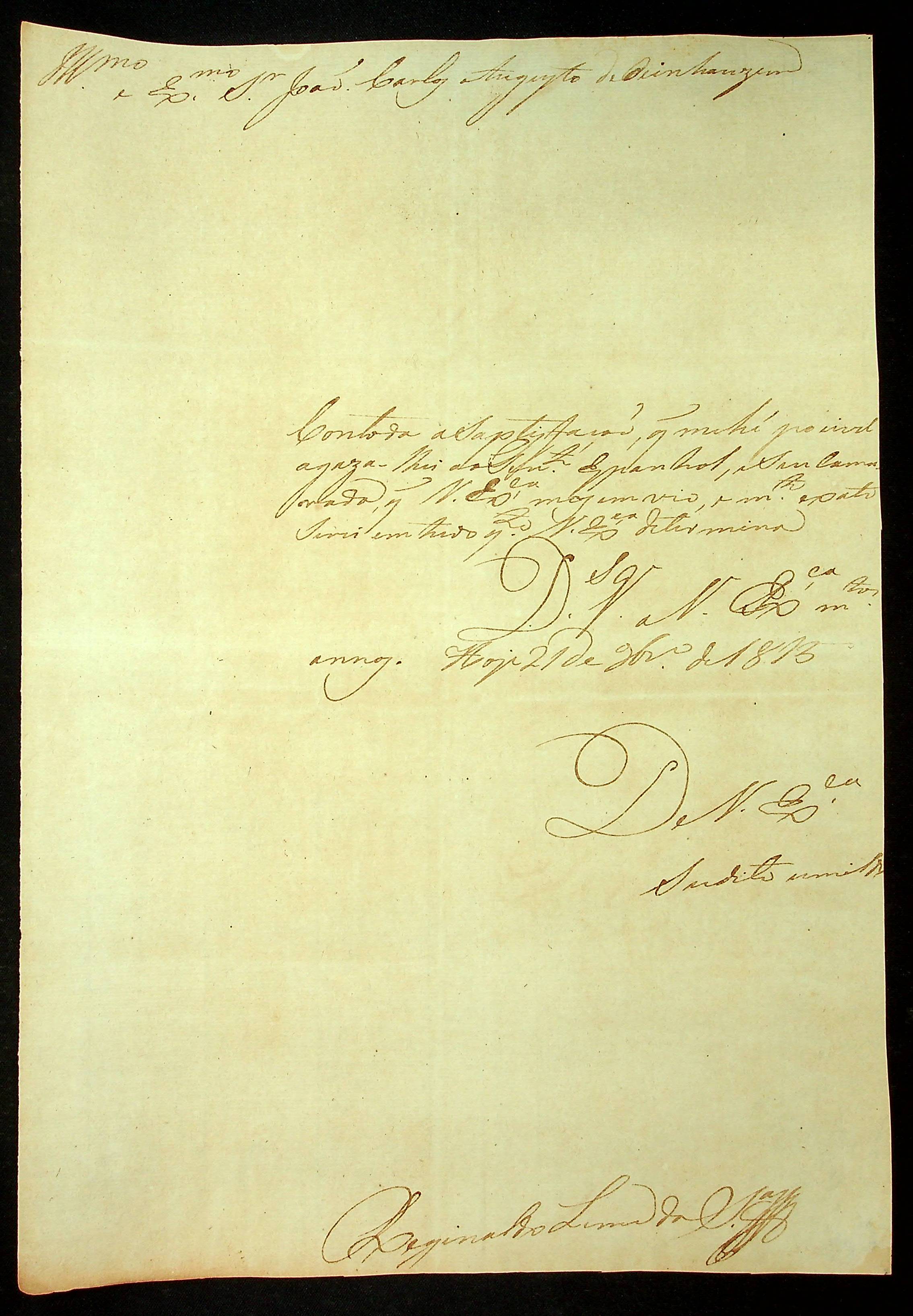 CARTA de Reginaldo Lima da Silva ao [Governador e Capitão-General da Capitania de Mato Grosso] João Carlos Augusto D’Oeynhausen e Gravemberg.