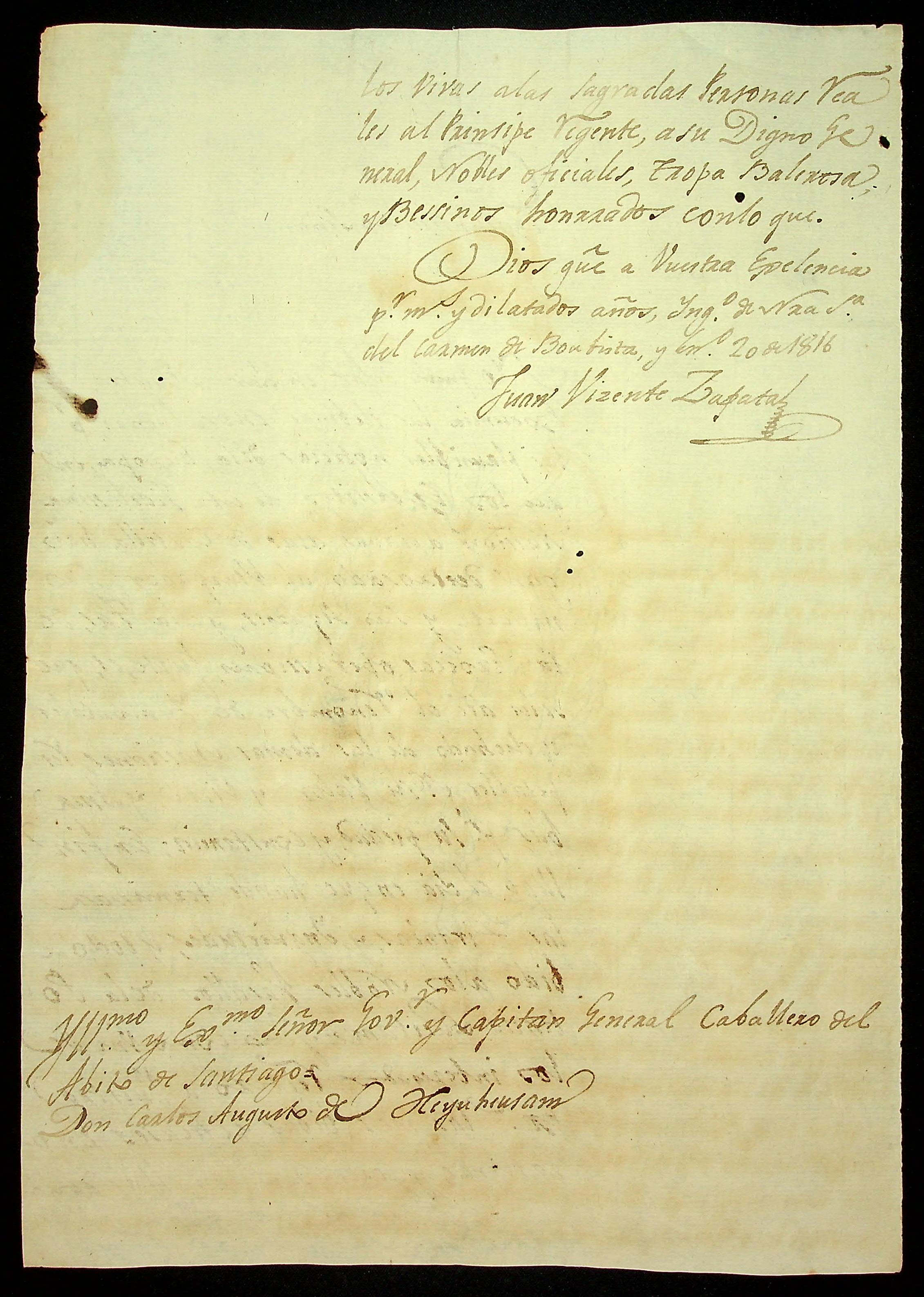 CARTA de Juan Vicente Zapata ao [Governador e Capitão-General da Capitania de Mato Grosso] João Carlos Augusto D’Oeynhausen e Gravemberg.