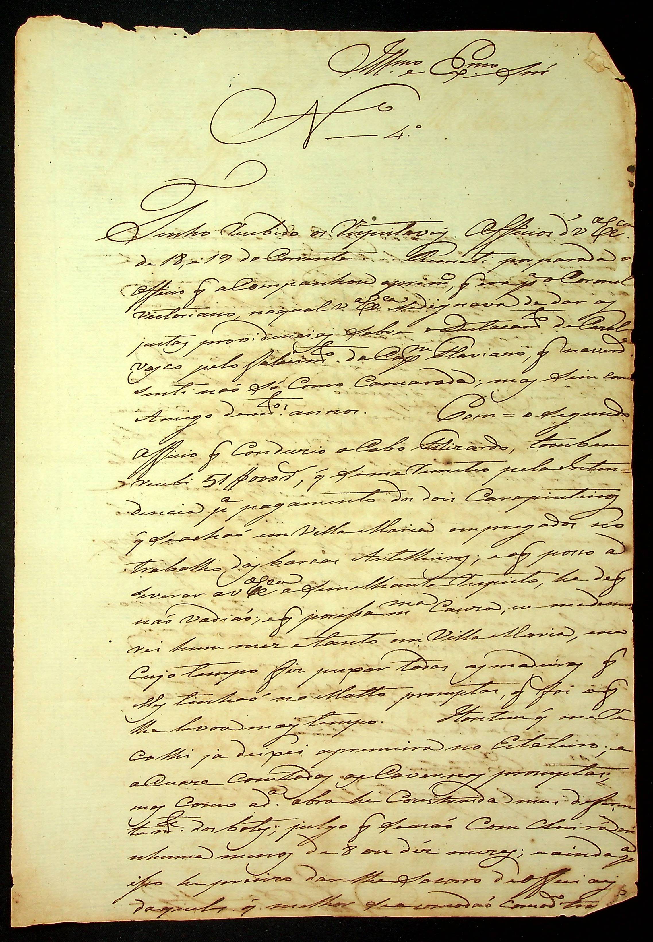 CARTA de João Pereira Leite ao [Governador e Capitão-General da Capitania de Mato Grosso] João Carlos Augusto D’Oeynhausen e Gravemberg.