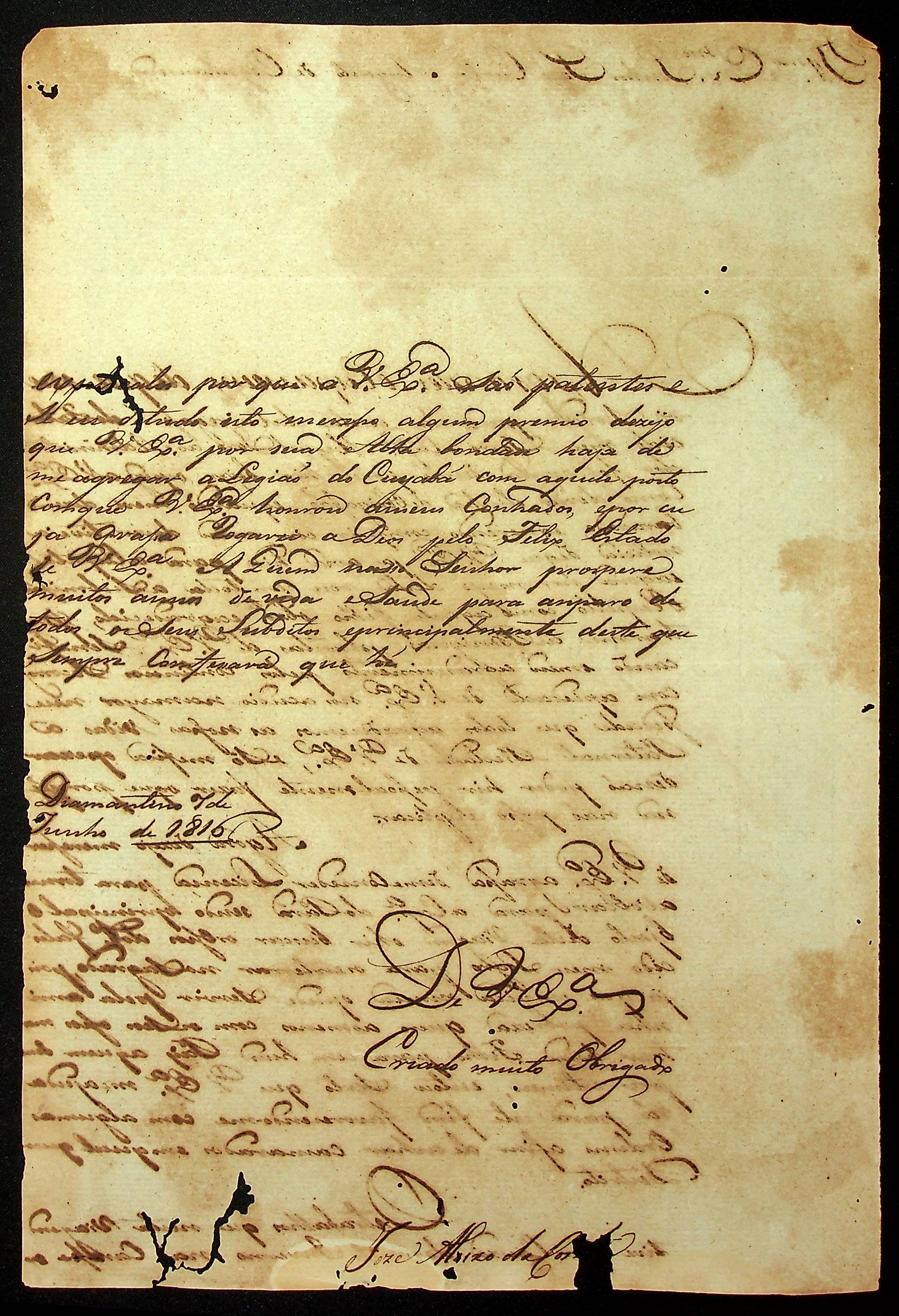 CARTA de José Aleixo da [Costa] ao [Governador e Capitão-General da Capitania de Mato Grosso] João Carlos Augusto D’Oeynhausen e Gravemberg.