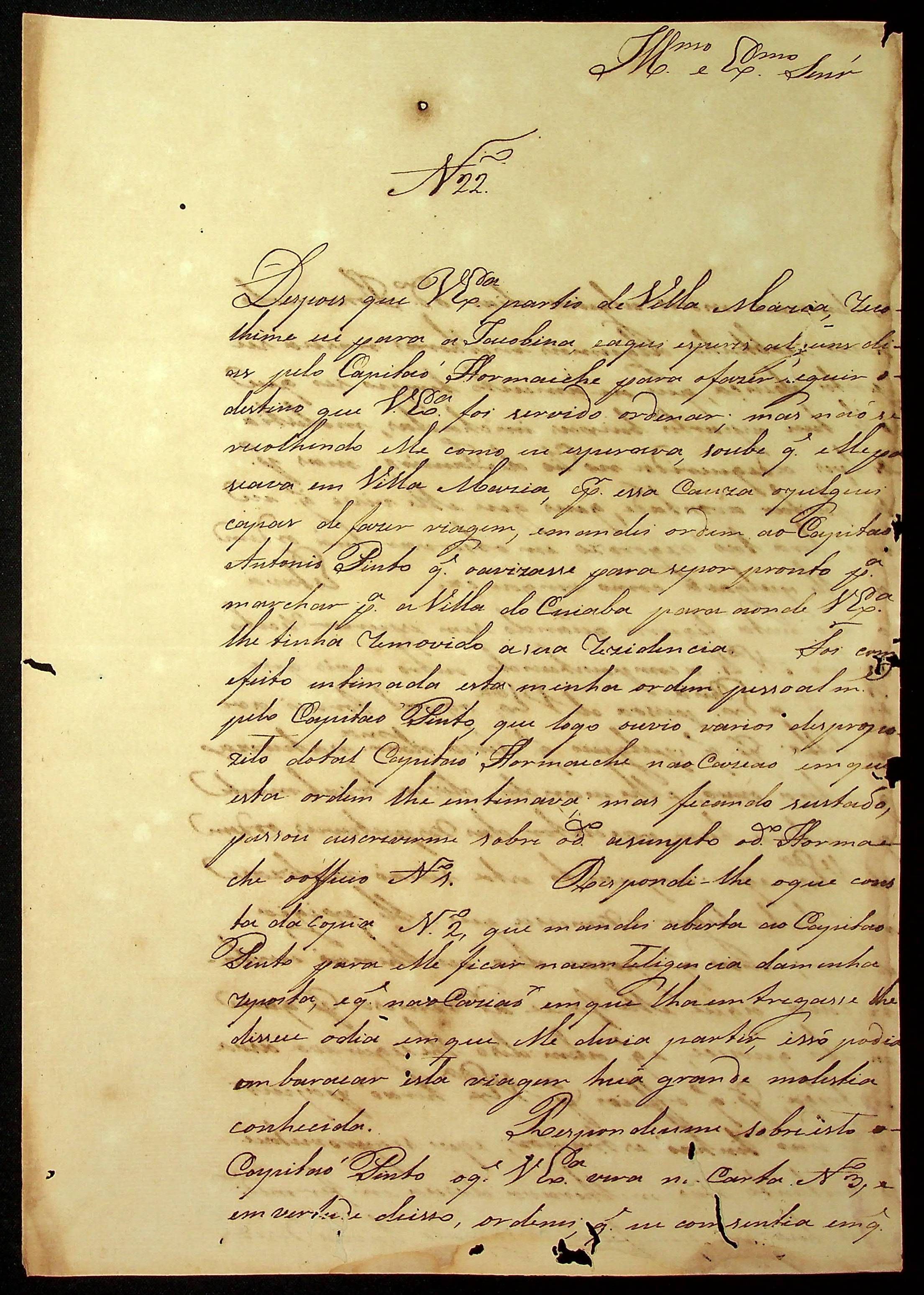 CARTA de João Pereira Leite ao [Governador e Capitão-General da Capitania de Mato Grosso] João Carlos Augusto D’Oeynhausen e Gravemberg.