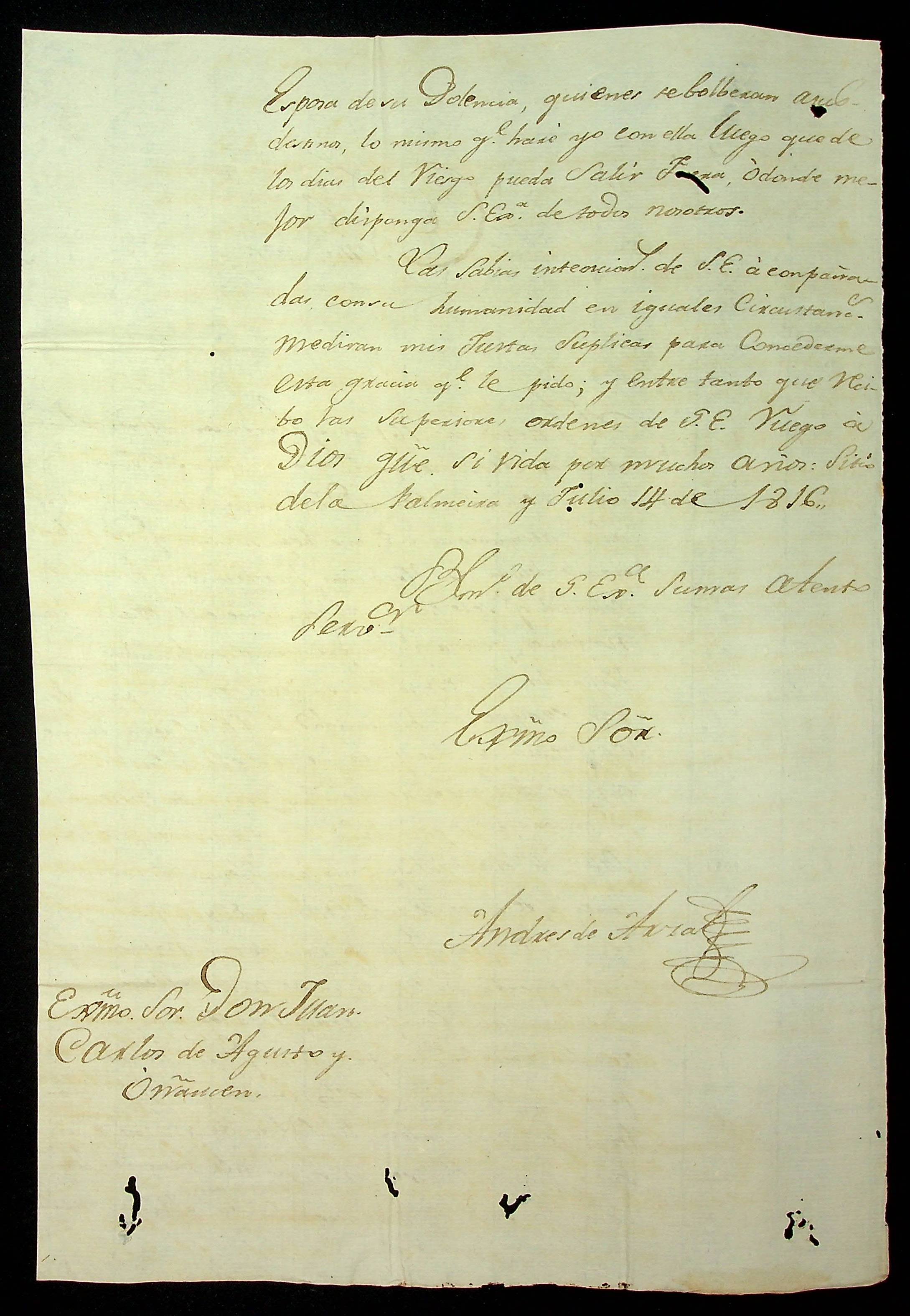 CARTA de Andres de Arza ao [Governador e Capitão-General da Capitania de Mato Grosso] João Carlos Augusto D’Oeynhausen e Gravemberg.
