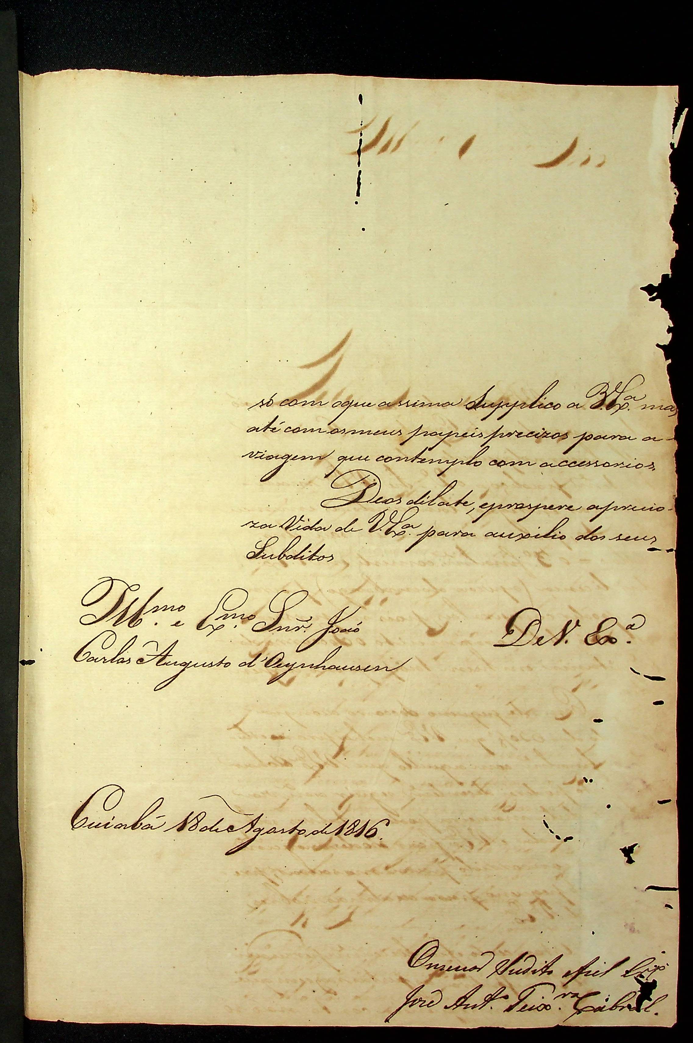 CARTA de José Antônio Teixeira Cabral ao [Governador e Capitão-General da Capitania de Mato Grosso] João Carlos Augusto D’Oeynhausen e Gravemberg.