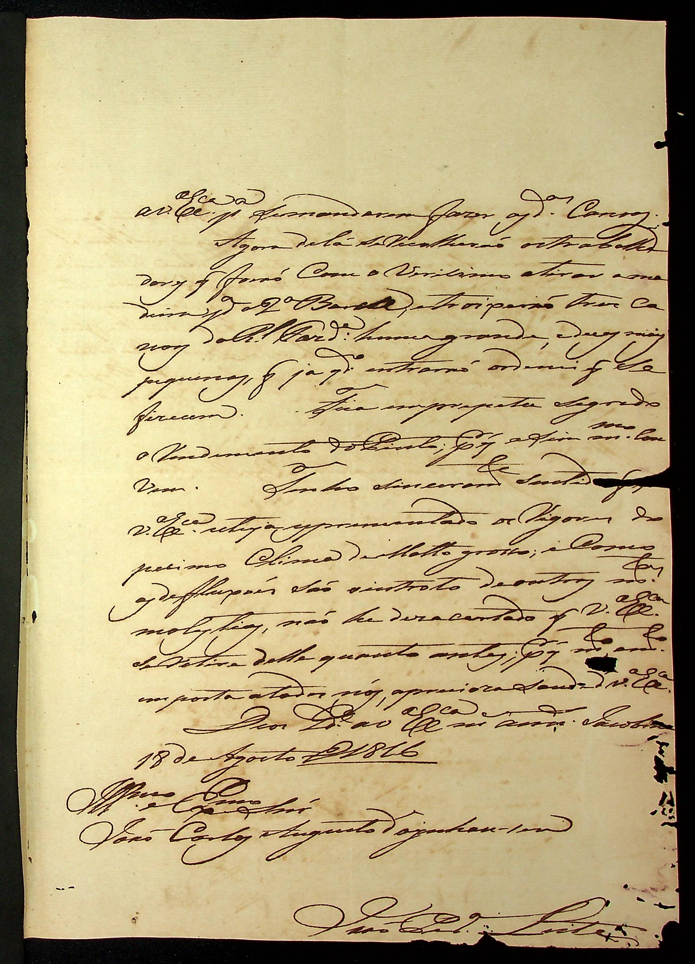 CARTA de João Pereira Leite ao [Governador e Capitão-General da Capitania de Mato Grosso] João Carlos Augusto D’Oeynhausen e Gravemberg.