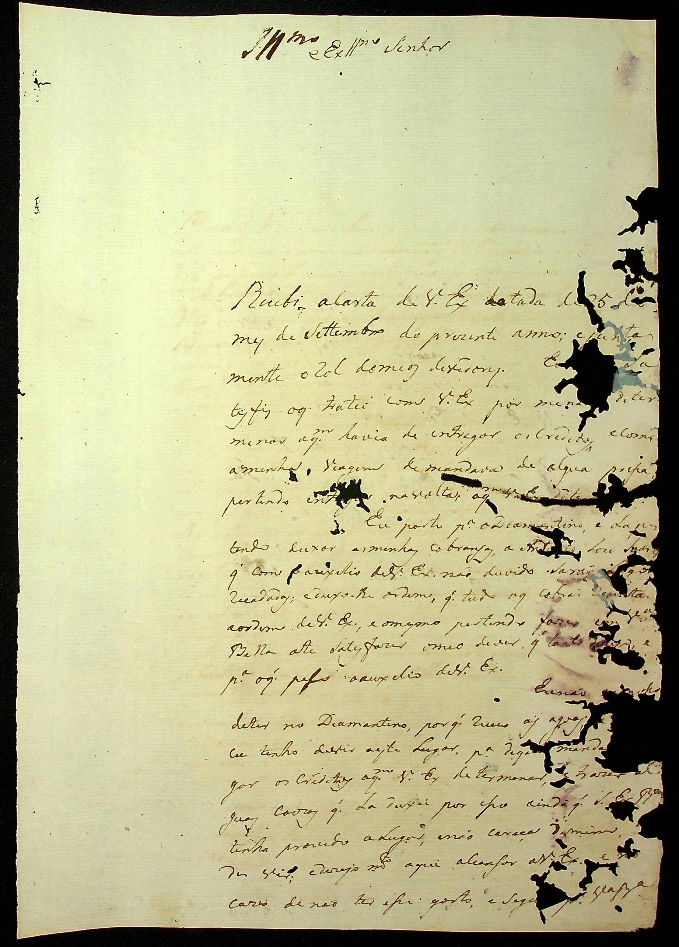 CARTA de Antônio Antunes Maciel ao [Governador e Capitão-General da Capitania de Mato Grosso] João Carlos Augusto D’Oeynhausen e Gravemberg.