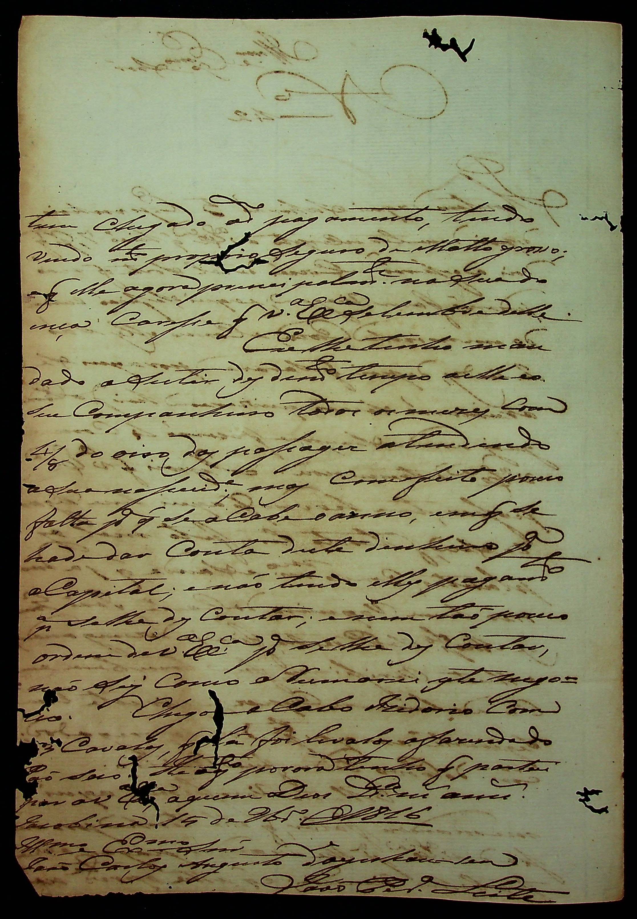 CARTA de João Pereira Leite ao [Governador e Capitão-General da Capitania de Mato Grosso] João Carlos Augusto D’Oeynhausen e Gravemberg.
