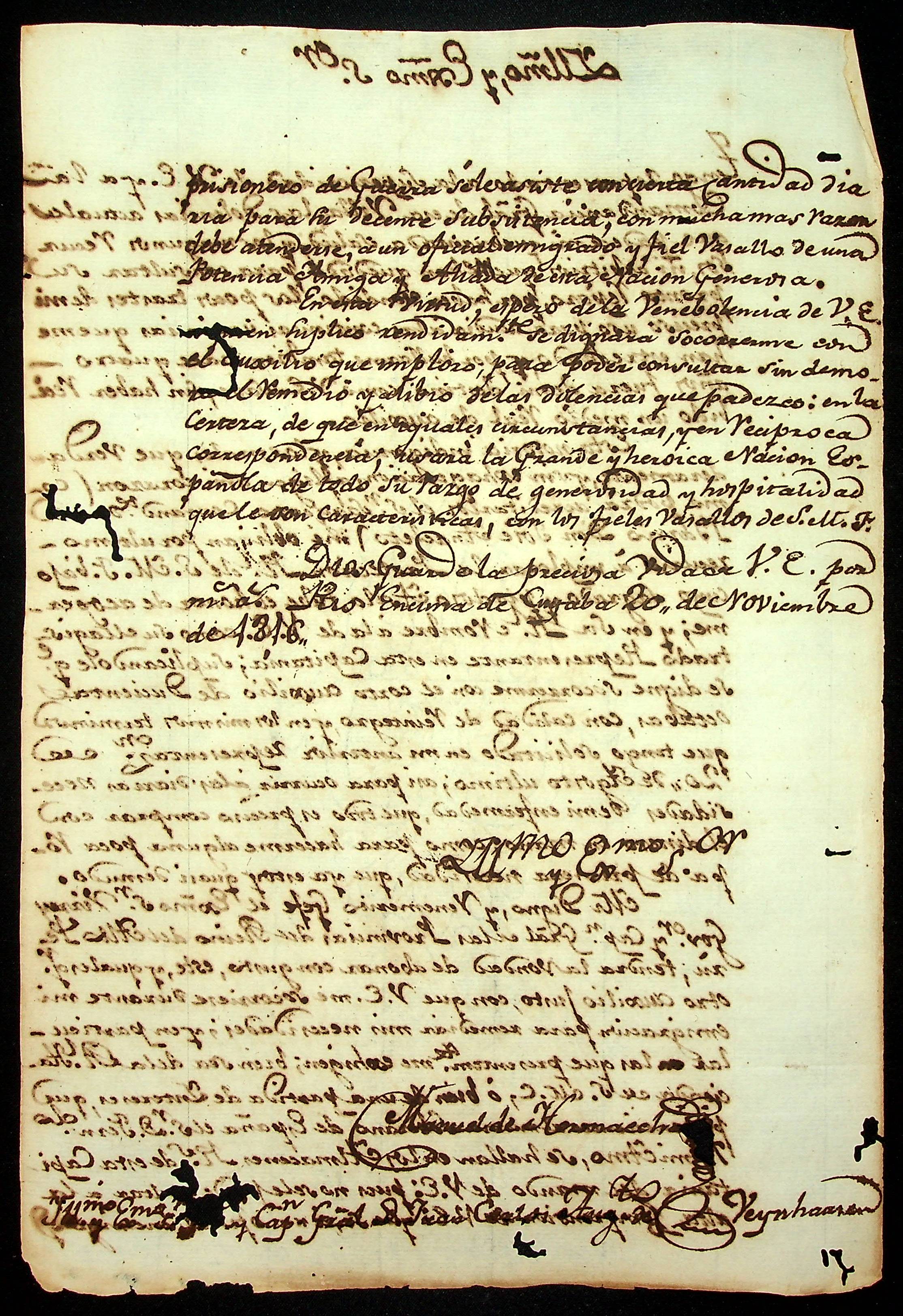 CARTA de Manoel Hormache ao Governador e Capitão General da Capitania de Mato Grosso João Carlos Augusto de Oeynhausen e Gravemberg.