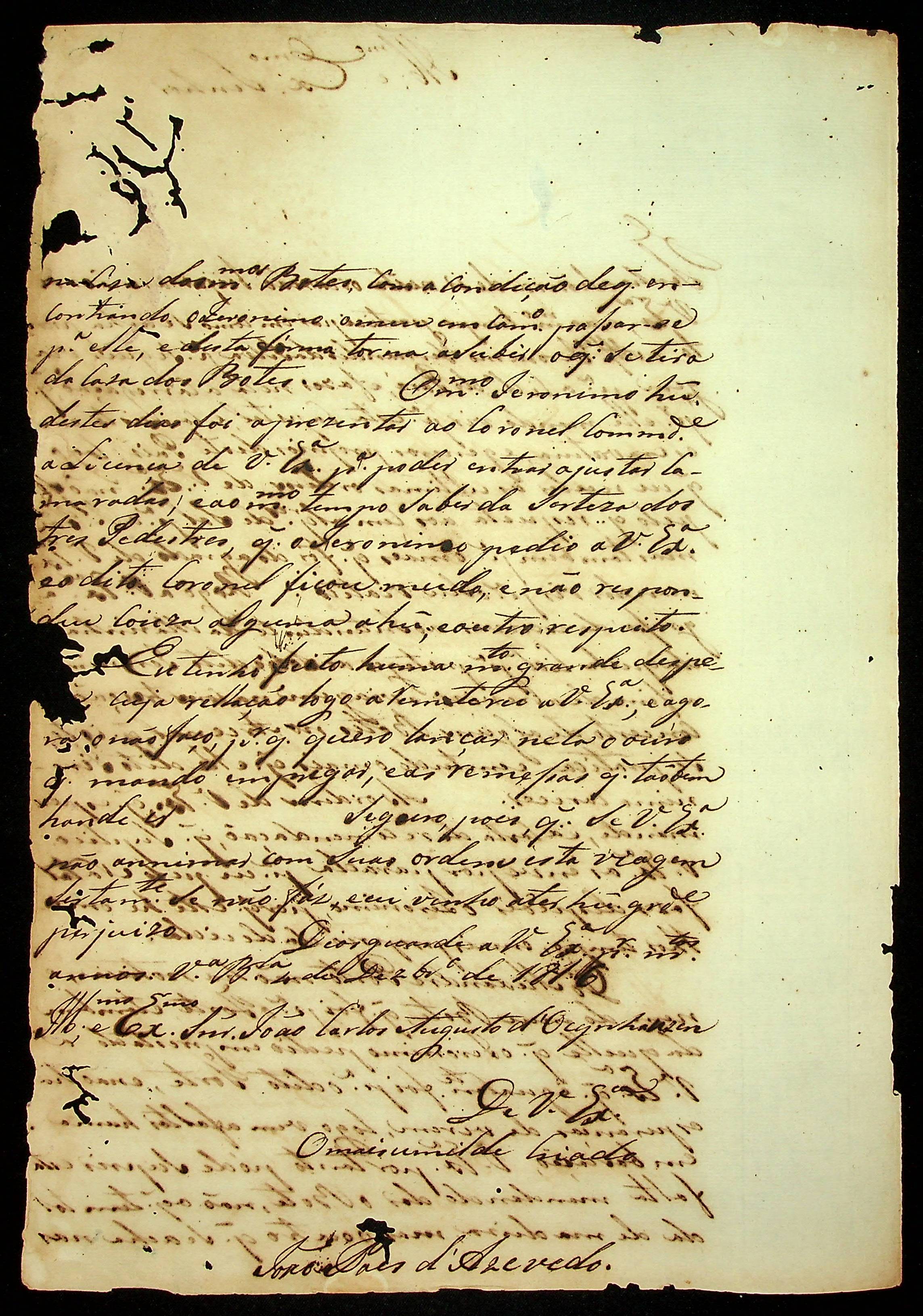 CARTA de João Paes de Azevedo ao [Governador e Capitão-General da Capitania de Mato Grosso] João Carlos Augusto D’Oeynhausen e Gravemberg.