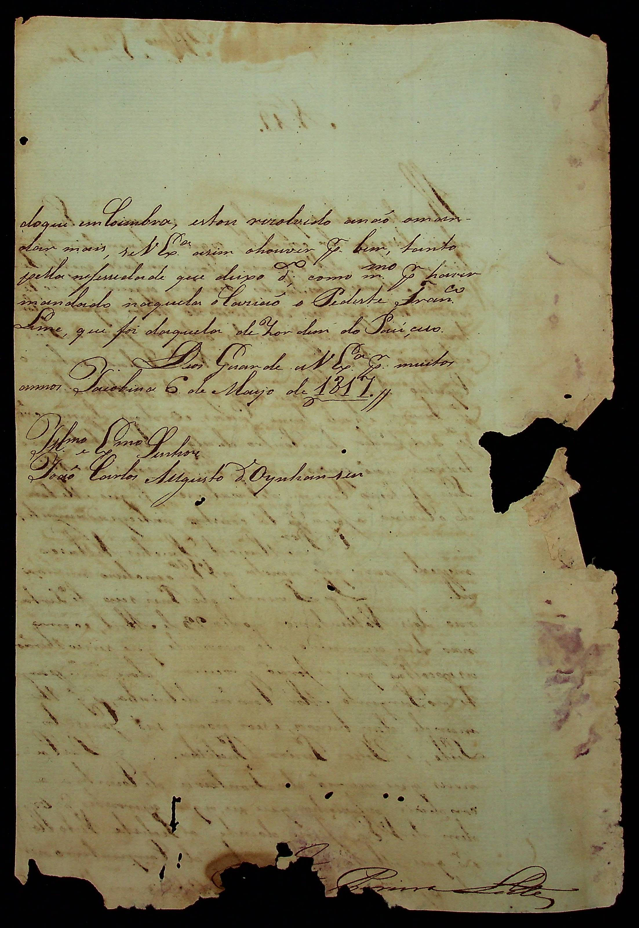 CARTA de João Pereira Leite ao [Governador e Capitão-General da Capitania de Mato Grosso] João Carlos Augusto D’Oeynhausen e Gravemberg.