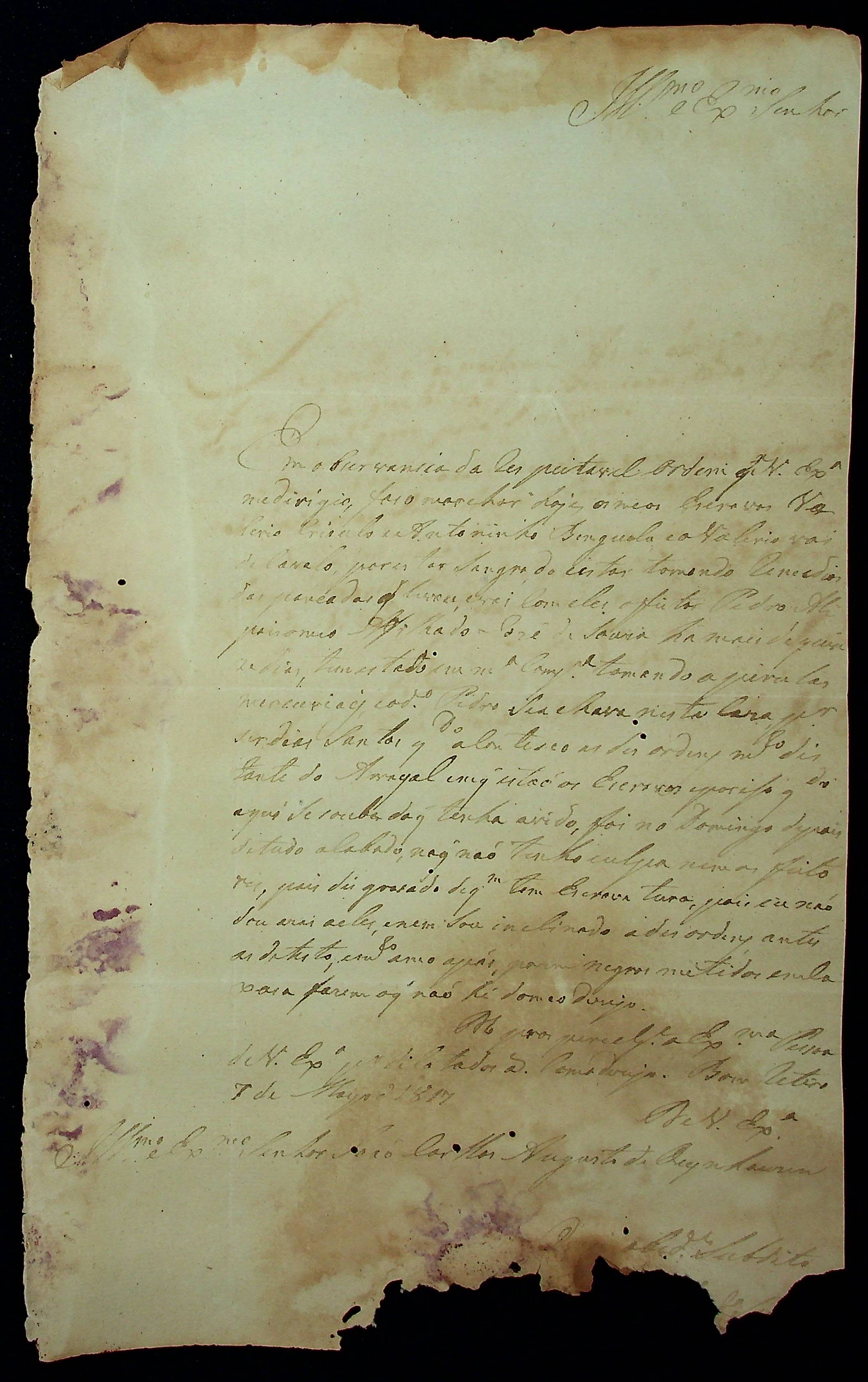 CARTA de [...] ao [Governador e Capitão-General da Capitania de Mato Grosso] João Carlos Augusto D’ Oeynhausen e Gravemberg.