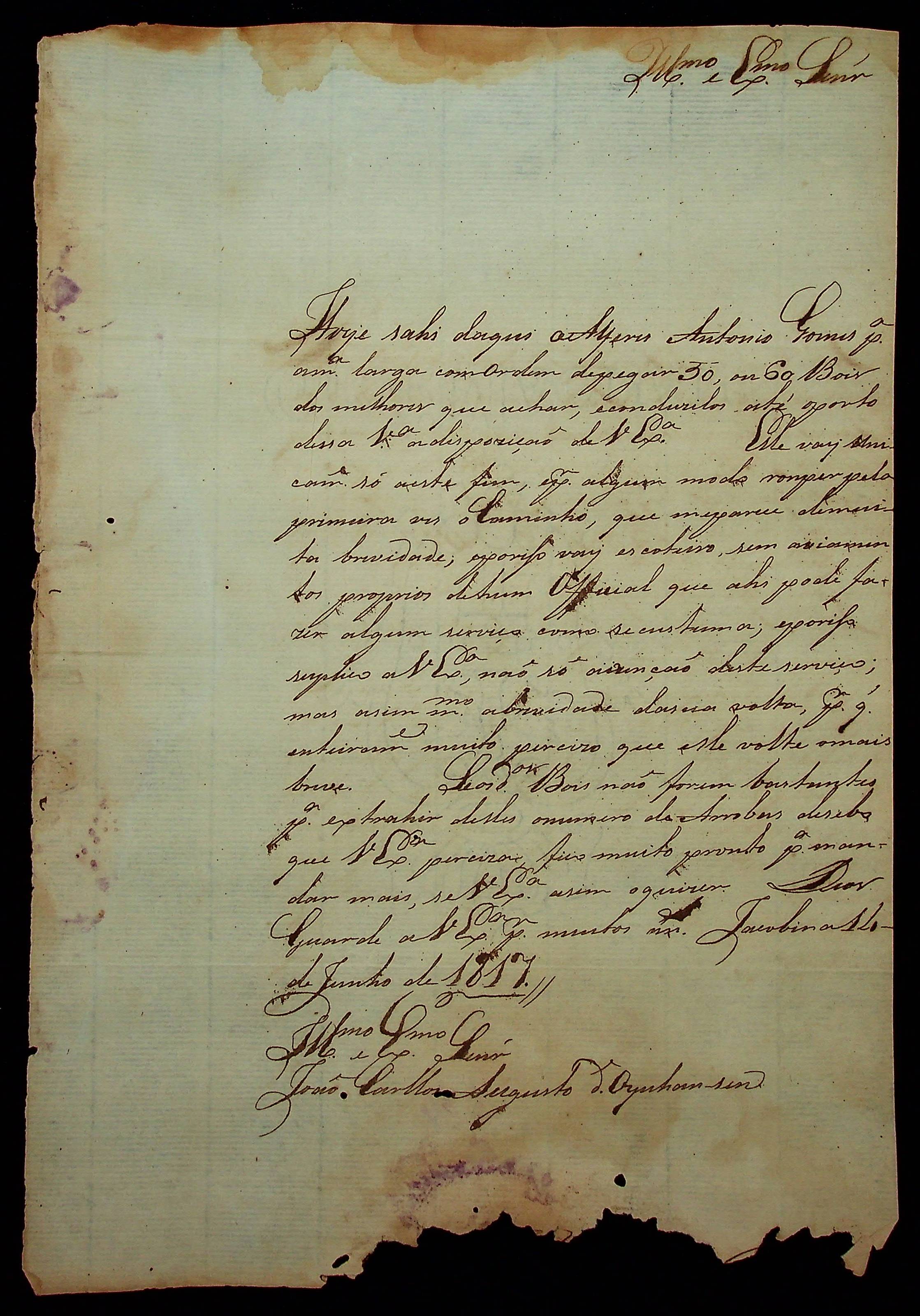 CARTA de [...] ao [Governador e Capitão-General da Capitania de Mato Grosso] João Carlos Augusto D’ Oeynhausen e Gravemberg.