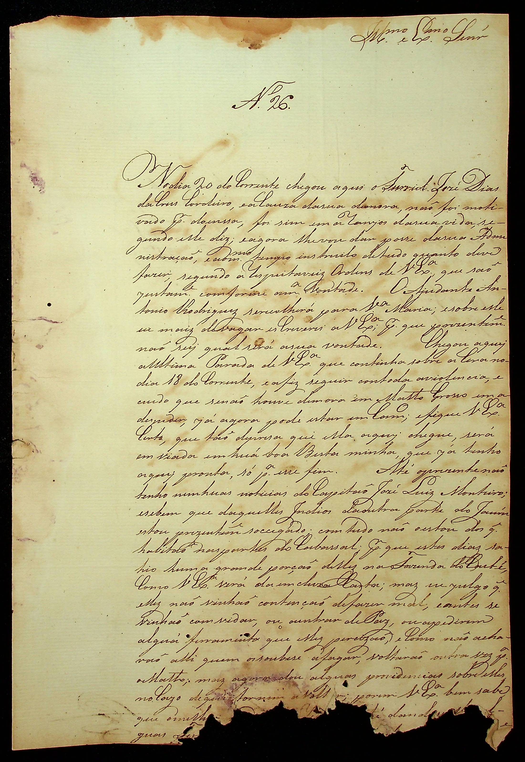 CARTA de [João Pereira Leite] ao [Governador e Capitão-General da Capitania de Mato Grosso] João Carlos Augusto D’Oeynhausen e Gravemberg.