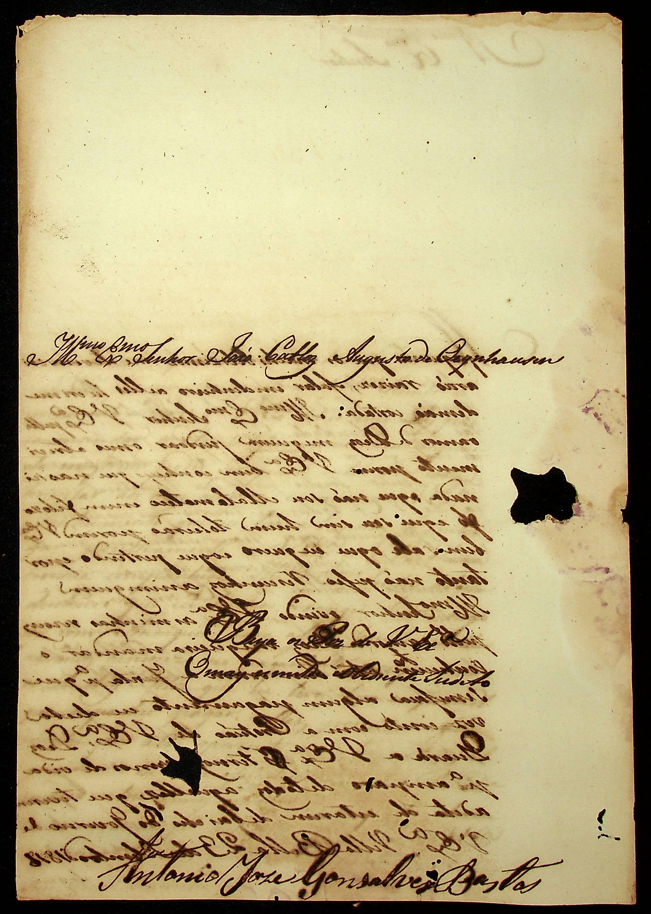 CARTA de Antônio José Gonçalves ao [Governador e Capitão-General da Capitania de Mato Grosso] João Carlos Augusto D’Oeynhausen e Gravemberg.