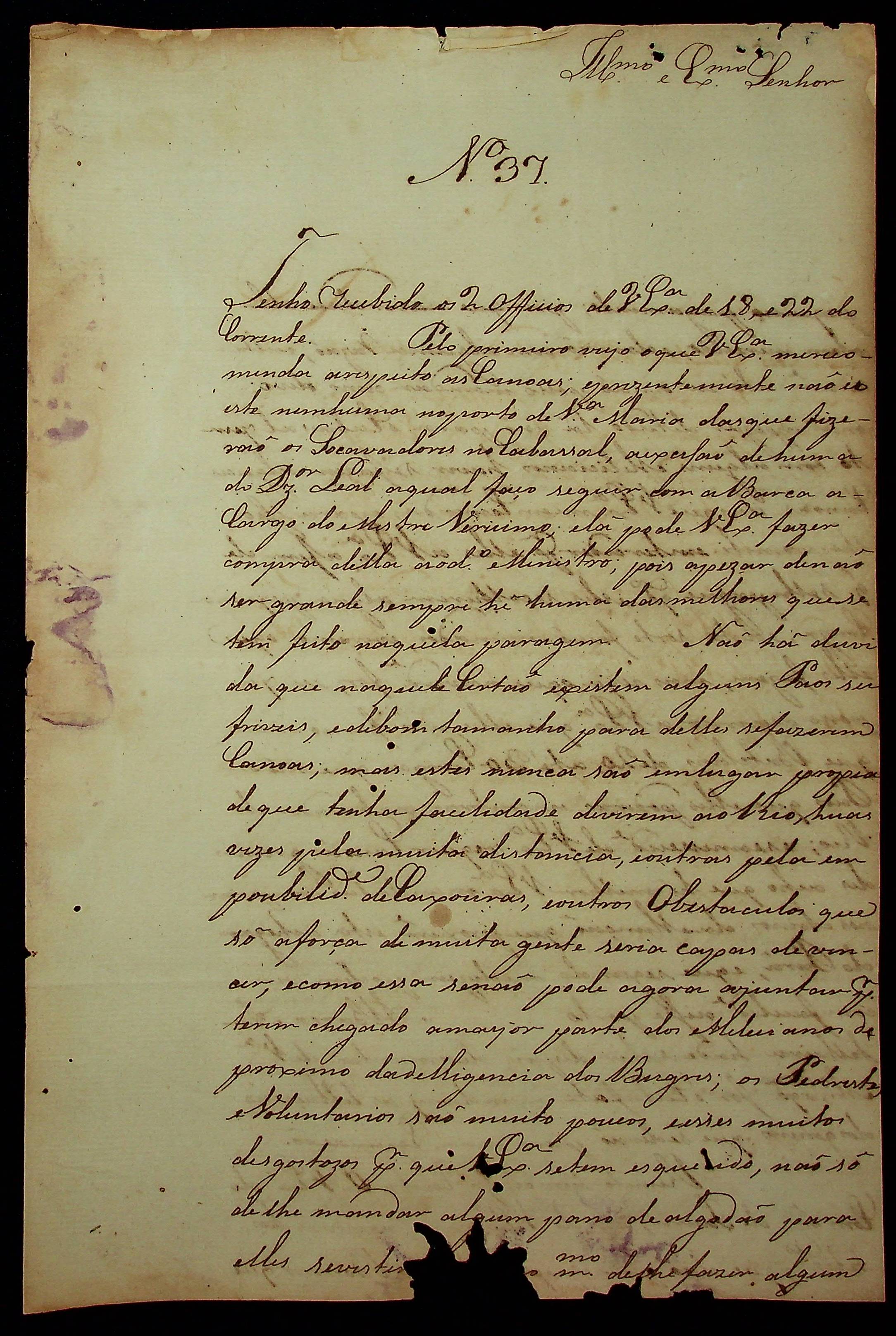 CARTA de [João] Pereira Leite ao [Governador e Capitão-General da Capitania de Mato Grosso] João Carlos Augusto D’Oeynhausen e Gravemberg.