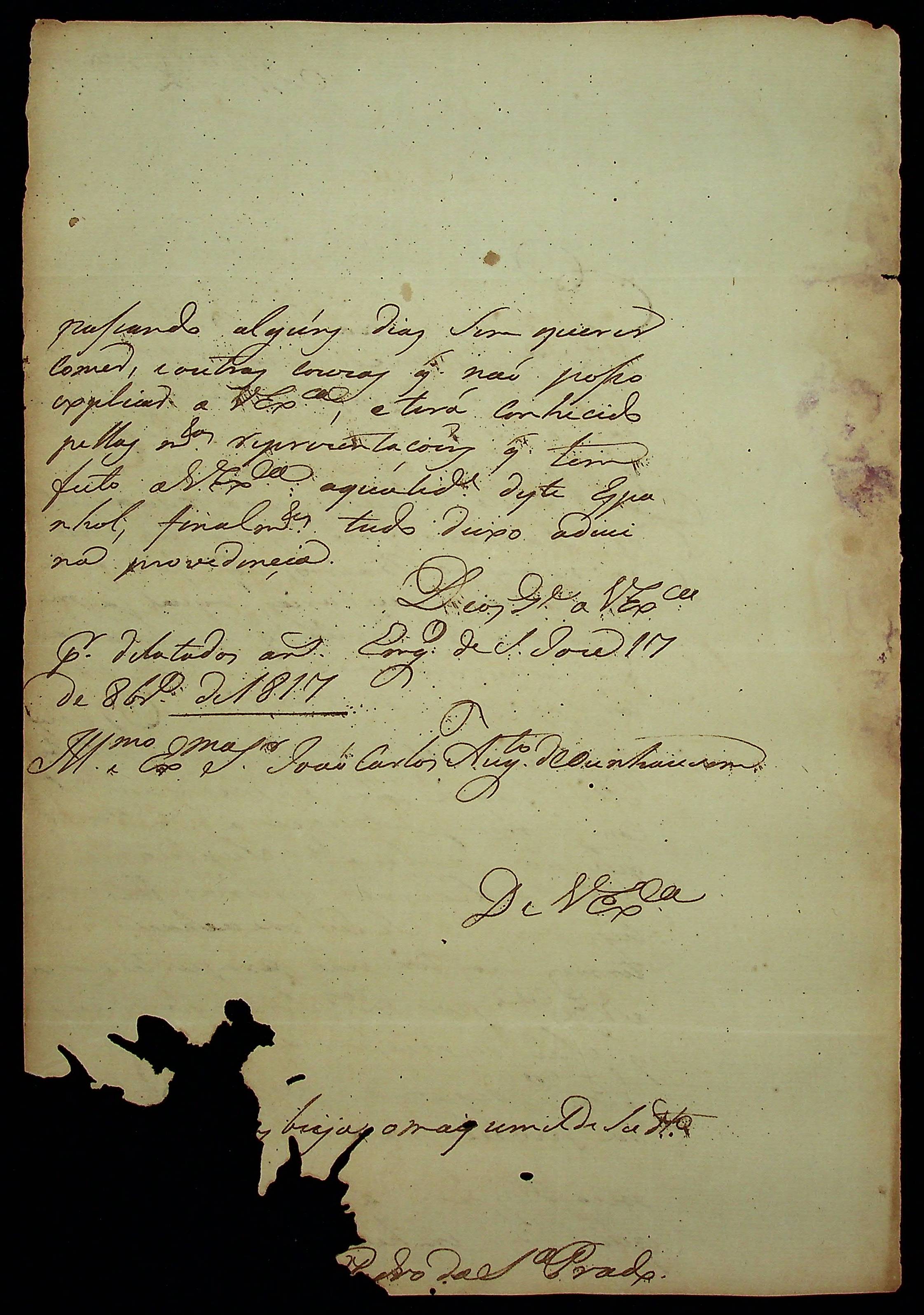 CARTA de [...] Pedro da Silva Prado ao [Governador e Capitão-General da Capitania de Mato Grosso] João Carlos Augusto D’Oeynhausen e Gravemberg.