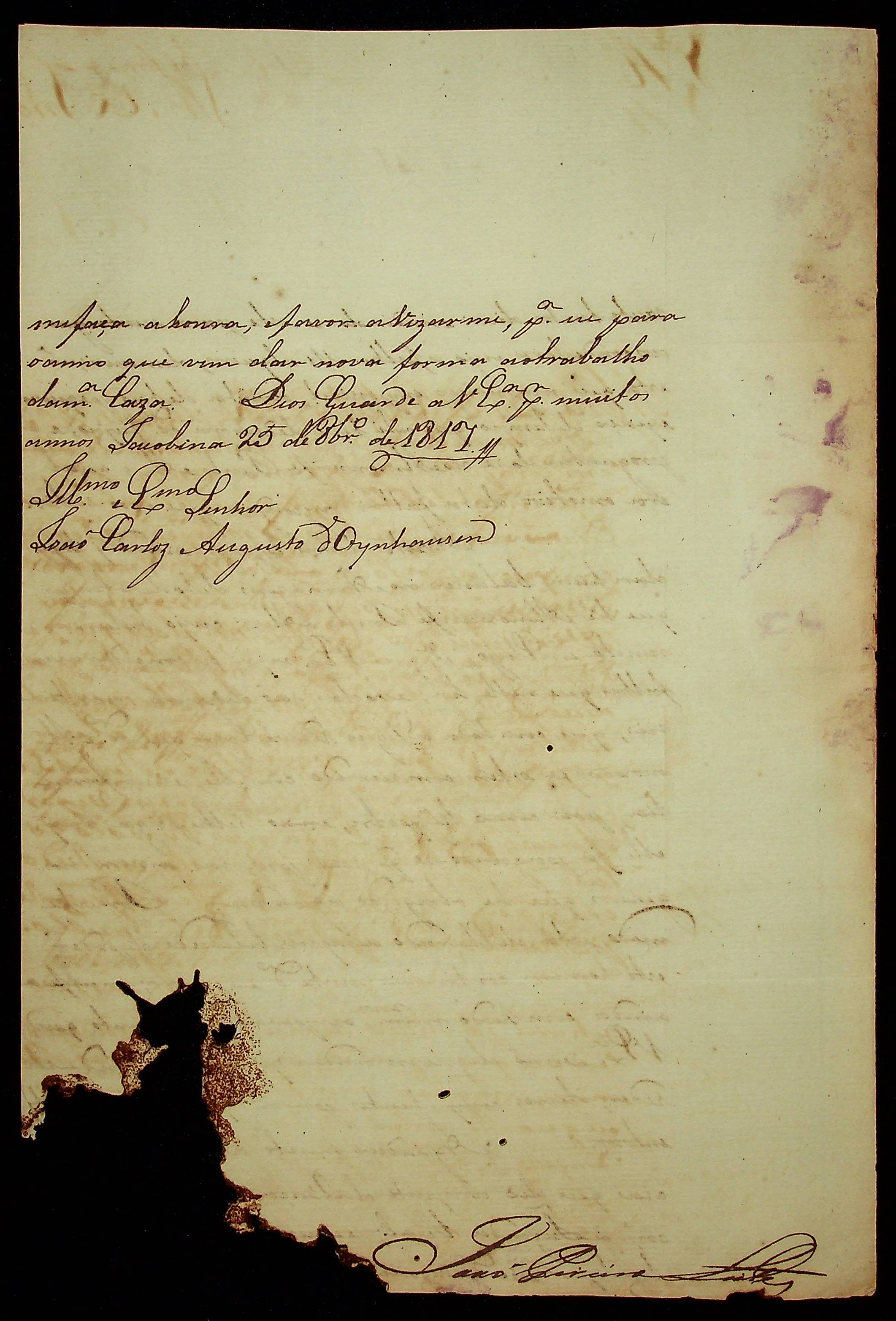 CARTA de João Pereira Leite ao [Governador e Capitão-General da Capitania de Mato Grosso] João Carlos Augusto D’Oeynhausen e Gravemberg.