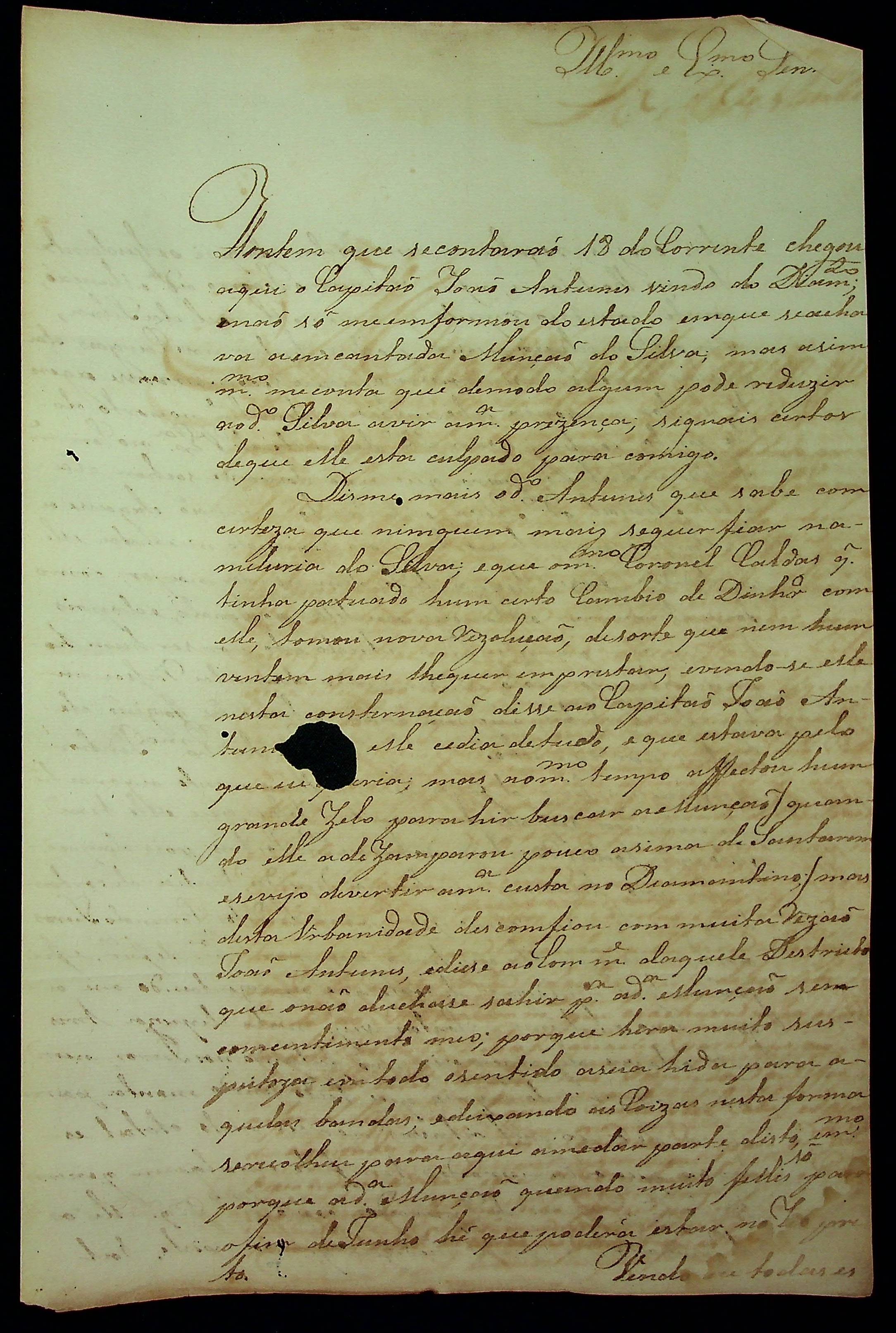 CARTA de João Pereira Leite ao [Governador e Capitão-General da Capitania de Mato Grosso] João Carlos Augusto D’Oeynhausen e Gravemberg.
