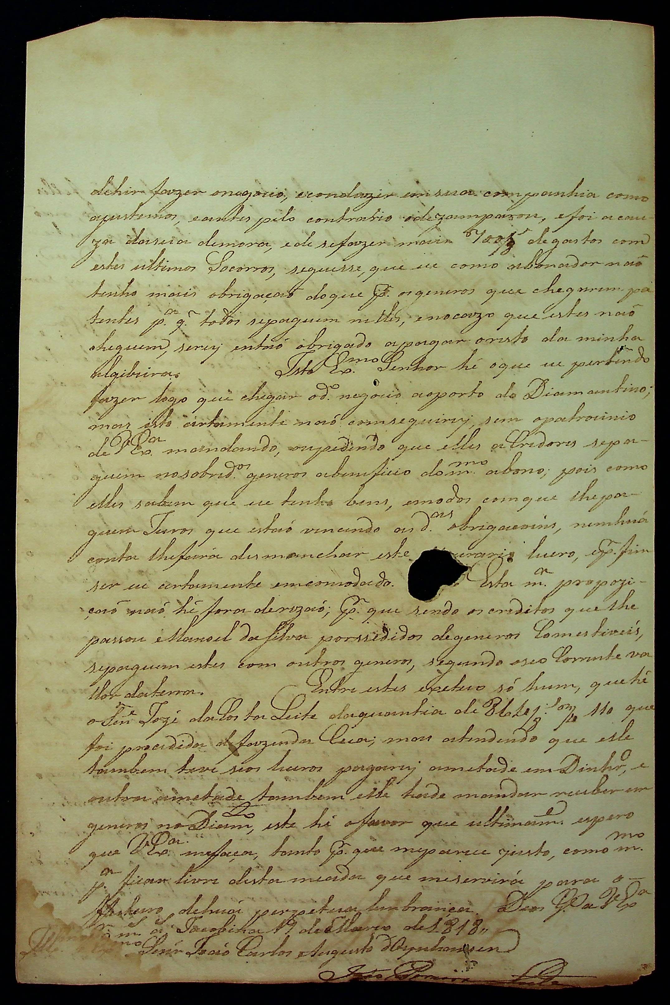 CARTA de João Pereira Leite ao [Governador e Capitão-General da Capitania de Mato Grosso] João Carlos Augusto D’Oeynhausen e Gravemberg.