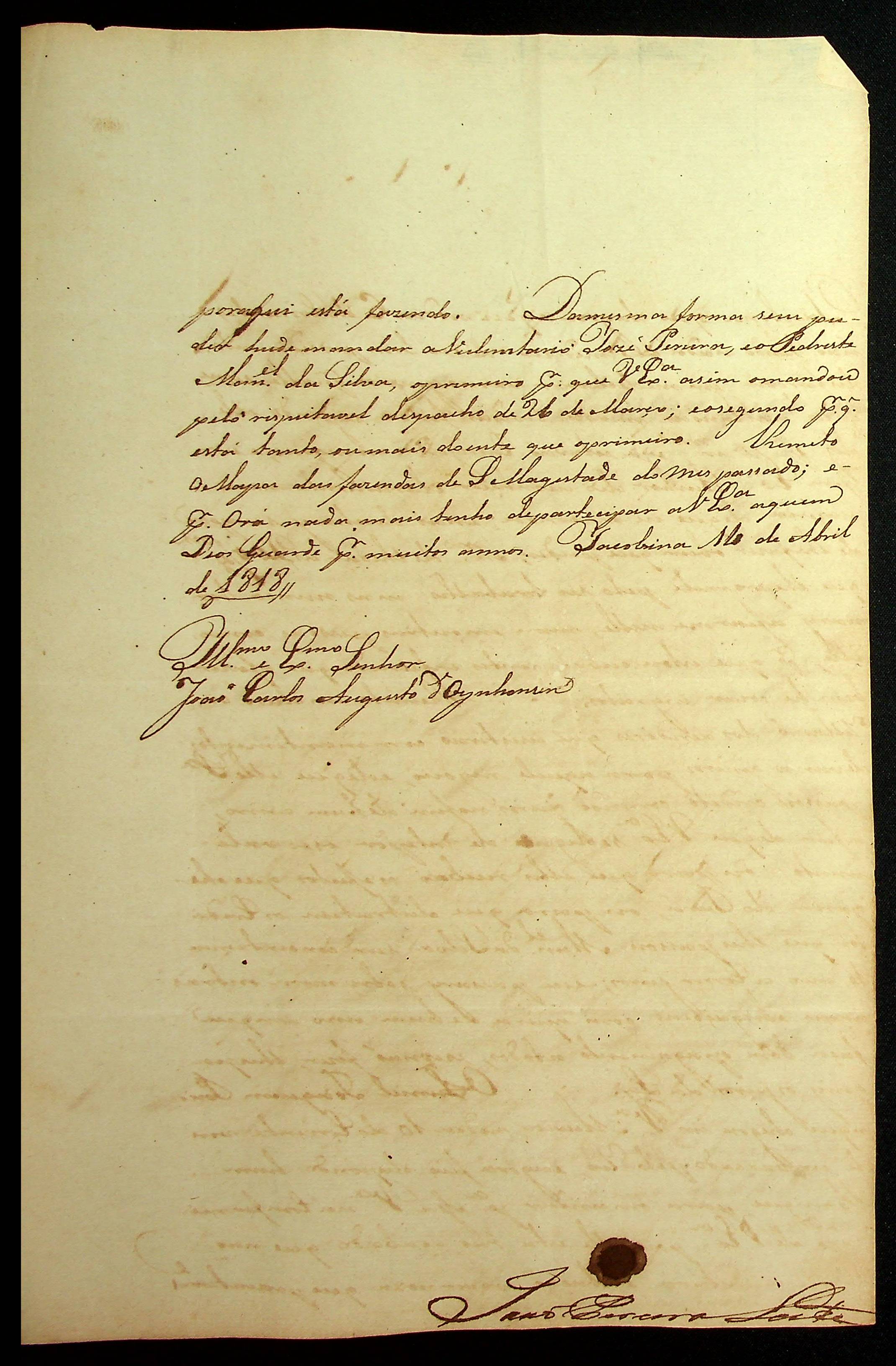 CARTA de João Pereira Leite ao [Governador e Capitão-General da Capitania de Mato Grosso] João Carlos Augusto D’Oeynhausen e Gravemberg.