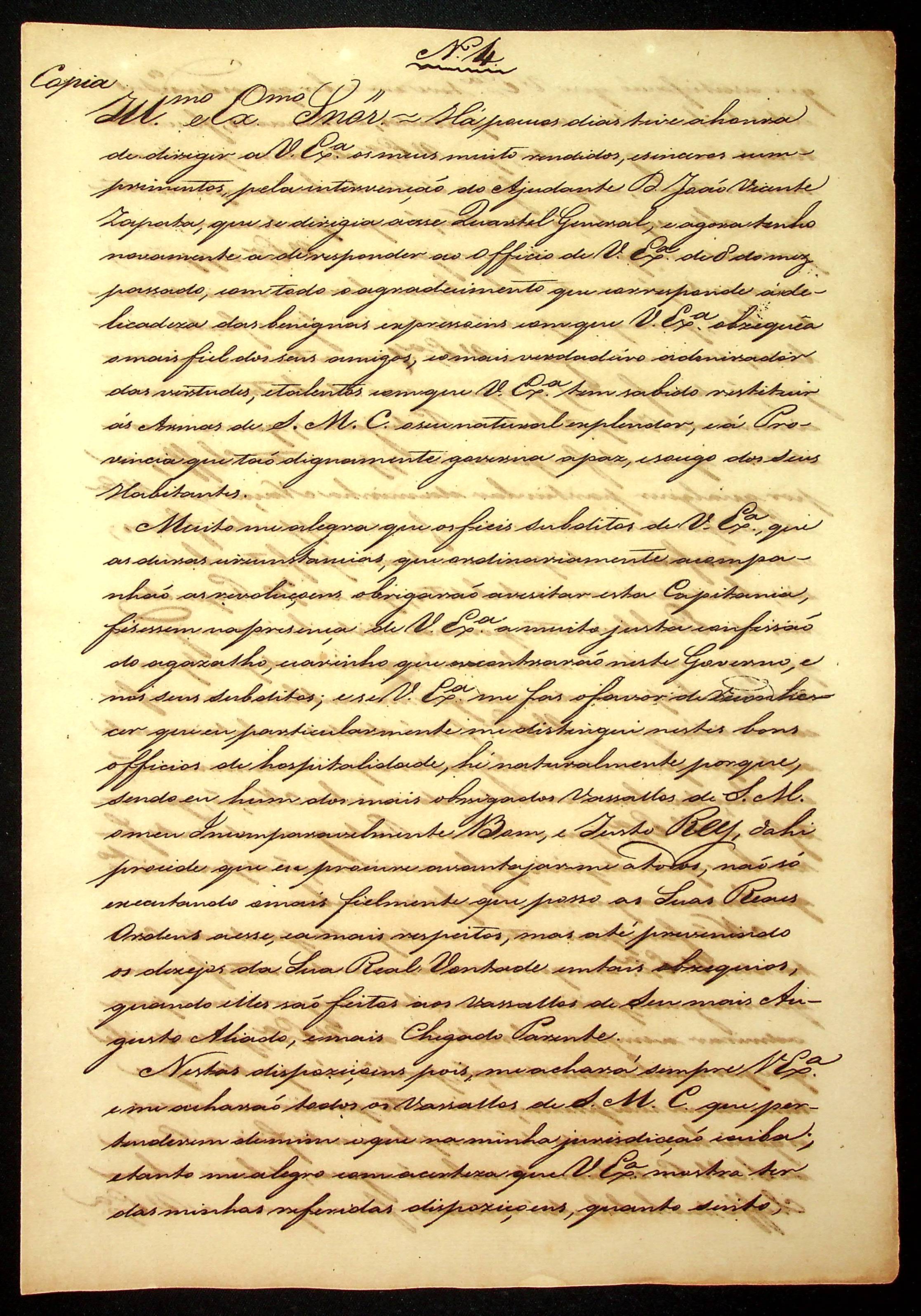 CARTA (cópia) do [Governador e Capitão General da Capitania de Mato Grosso] João Carlos Augusto de Oeynhausen e Gravemberg ao Governador e Capitão General de Santa Cruz de La Sierra D. Francisco Xavier de Aguilera.