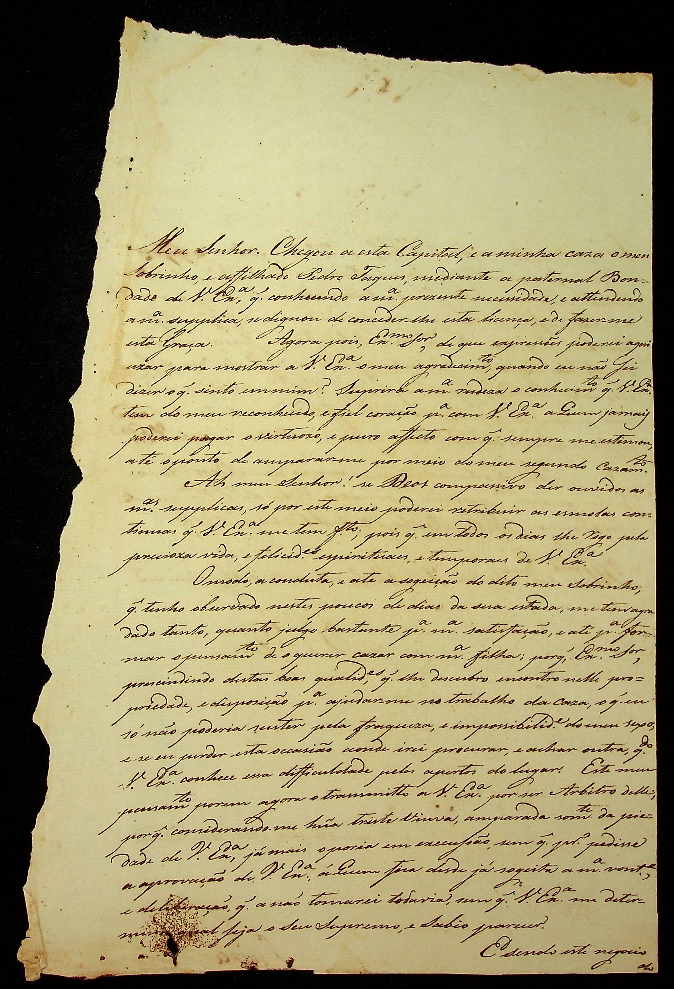 CARTA de Luiza ao [Governador e Capitão-General da Capitania de Mato Grosso] João Carlos Augusto D’ Oeynhausen e Gravemberg.