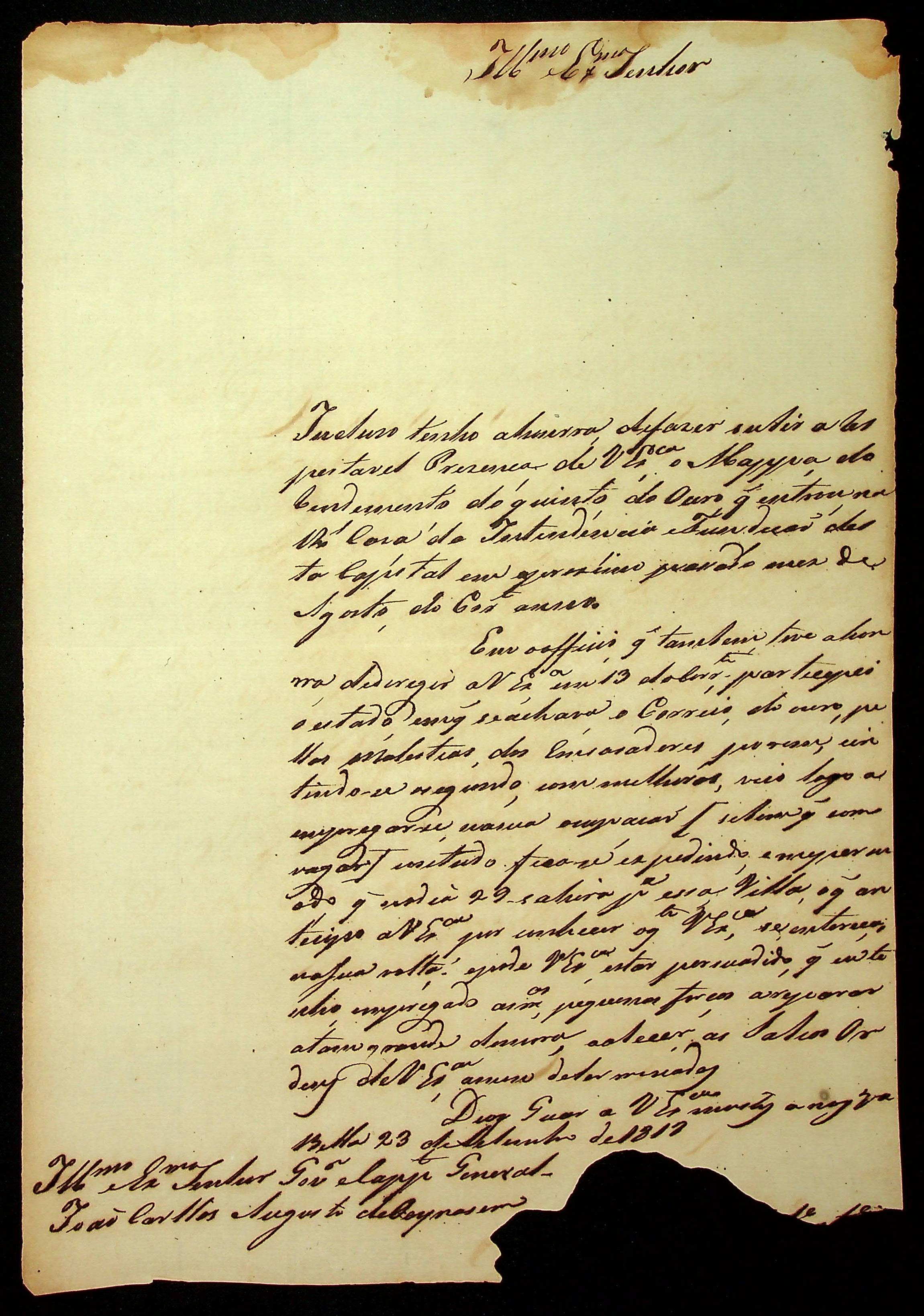 CARTA de [...] ao [Governador e Capitão-General da Capitania de Mato Grosso] João Carlos Augusto D’ Oeynhausen e Gravemberg.