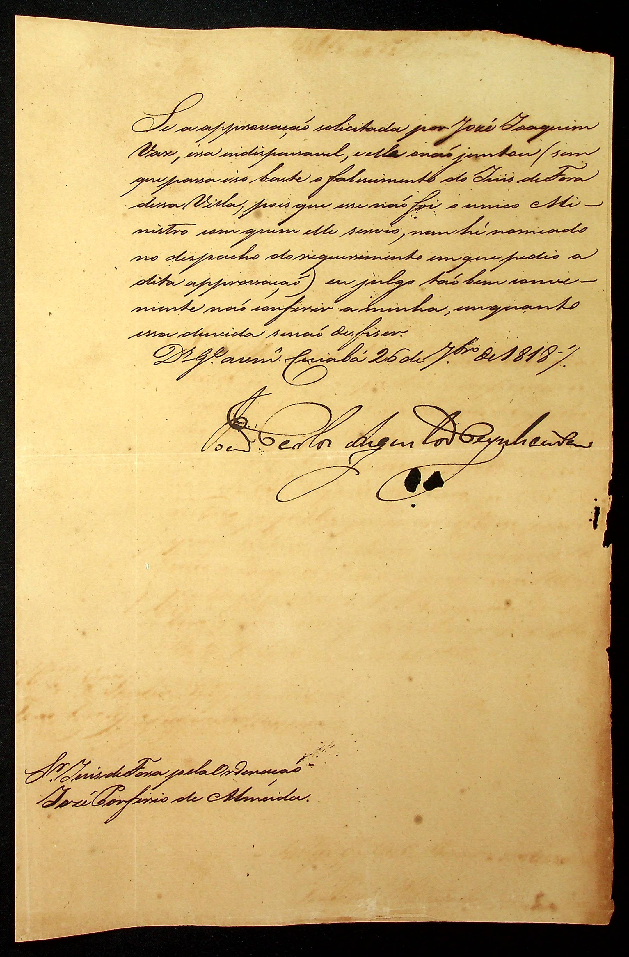 CARTA do [Governador e Capitão General da Capitania de Mato Grosso] João Carlos Augusto de Oeynhausen e Gravemberg ao Juíz de Fora por Ordenação José Porfirio de Almeida.