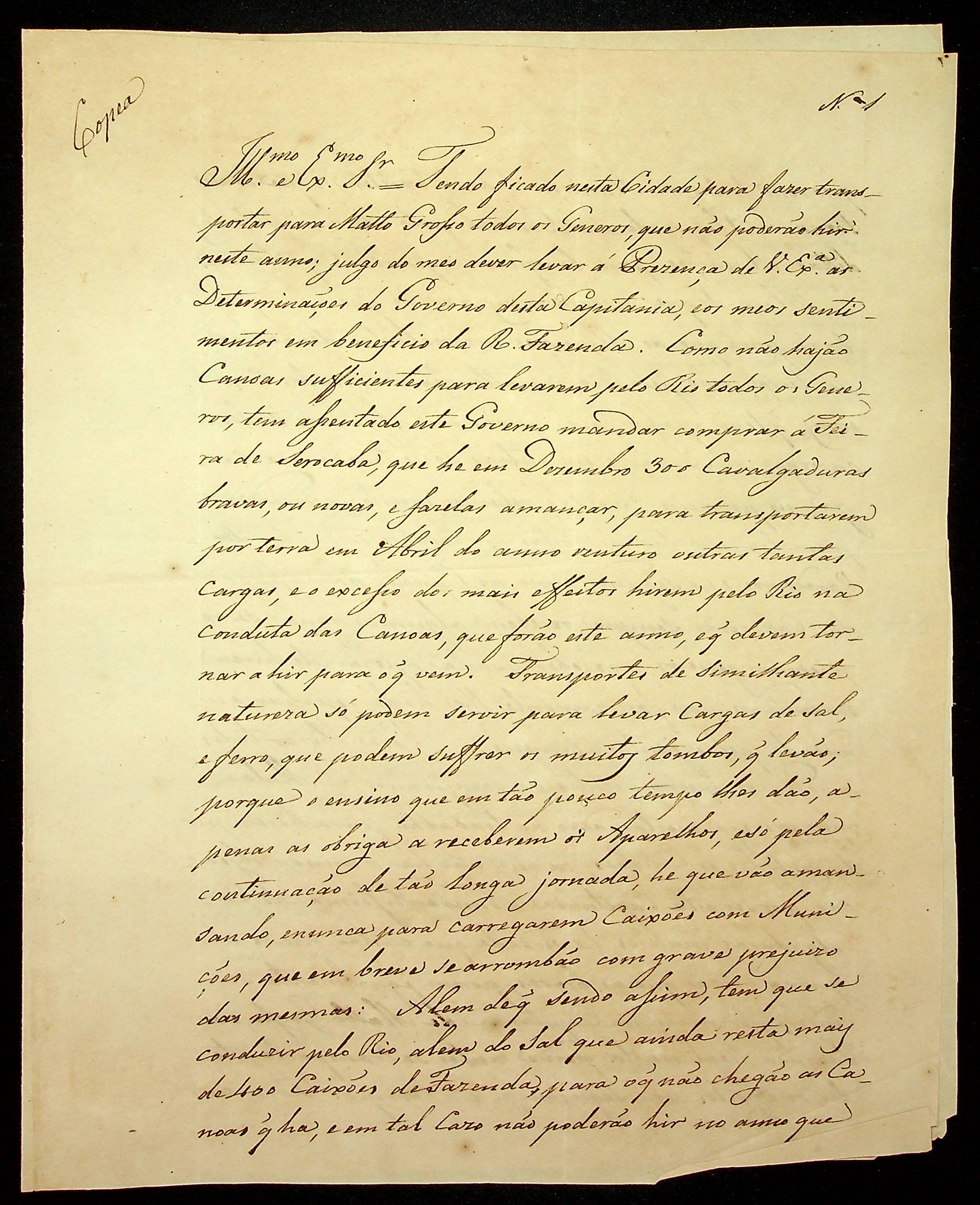 CARTA (cópia) de João Anastácio de Souza Pereira da Silva à Tomas Antônio de Villanova Portugal.