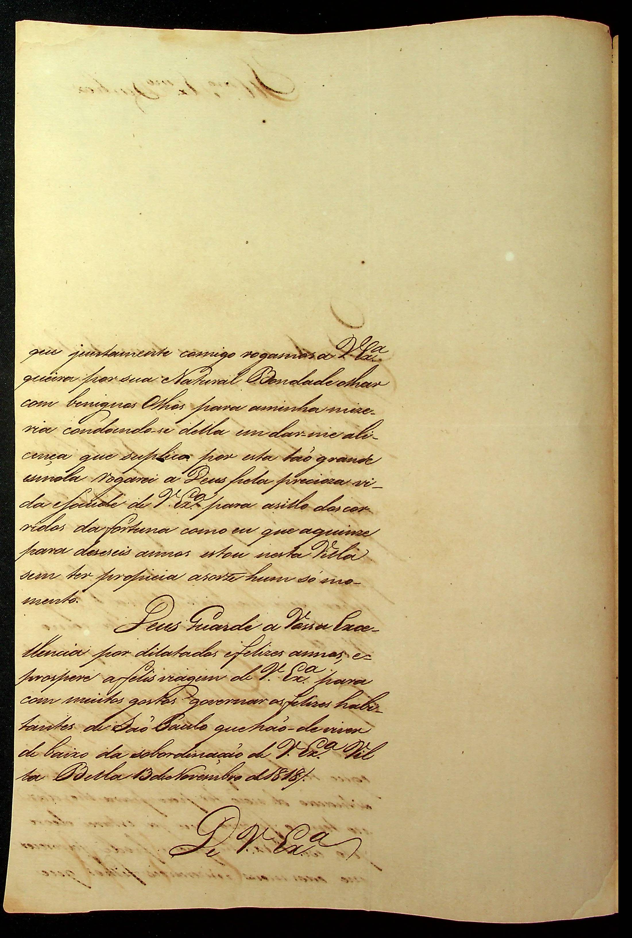 CARTA de Florentino Antônio Pereira ao [Governador e Capitão-General da Capitania de Mato Grosso] João Carlos Augusto D’Oeynhausen e Gravemberg.