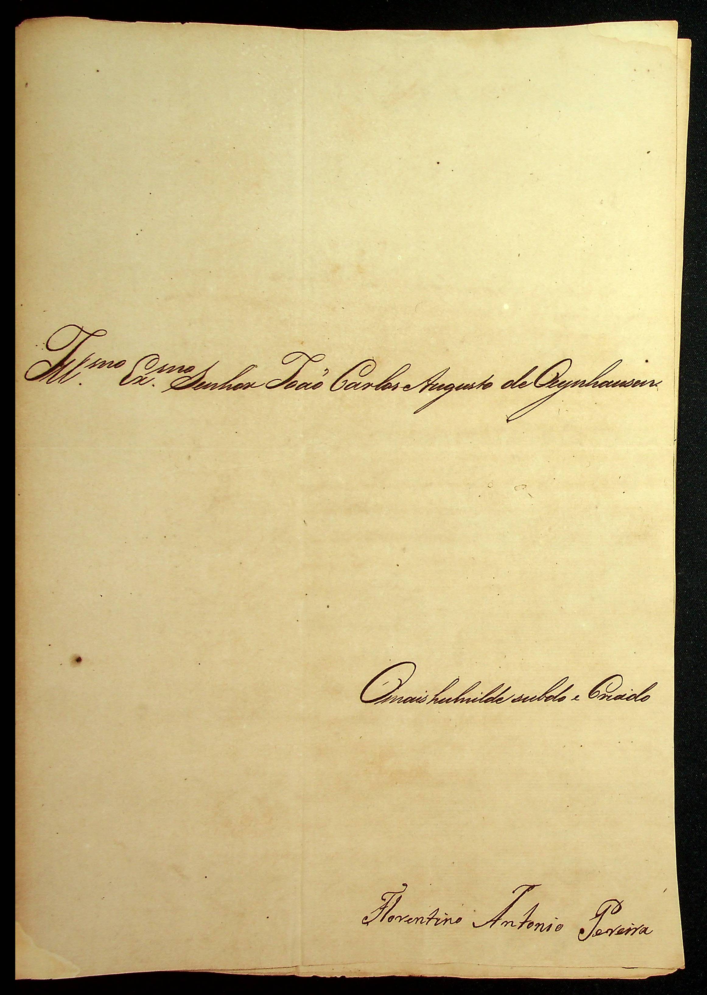CARTA de Florentino Antônio Pereira ao [Governador e Capitão-General da Capitania de Mato Grosso] João Carlos Augusto D’Oeynhausen e Gravemberg.