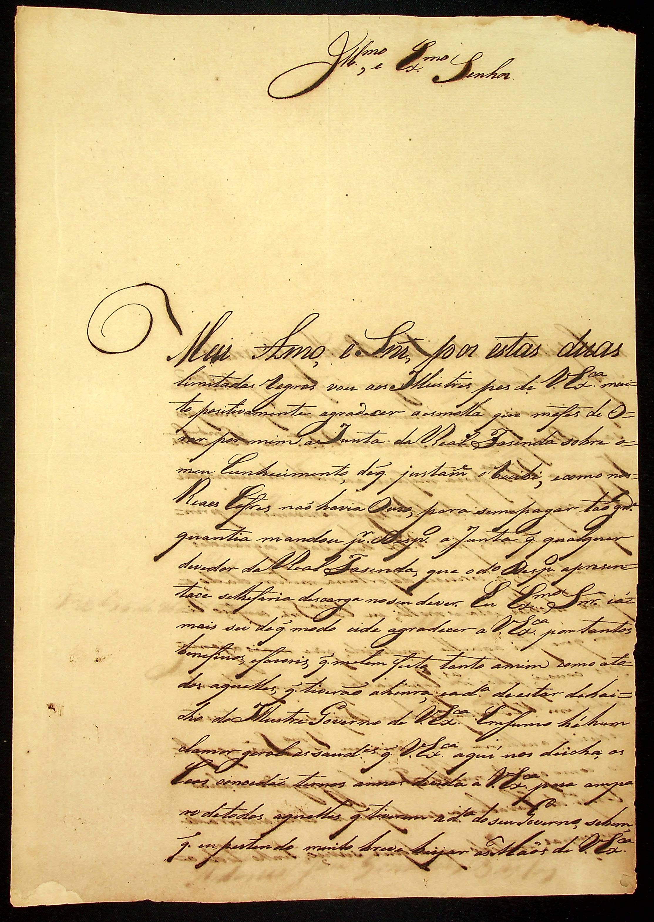 CARTA de Antônio José Gonçalves Bastos ao [Governador e Capitão-General da Capitania de Mato Grosso] João Carlos Augusto D’Oeynhausen e Gravemberg.