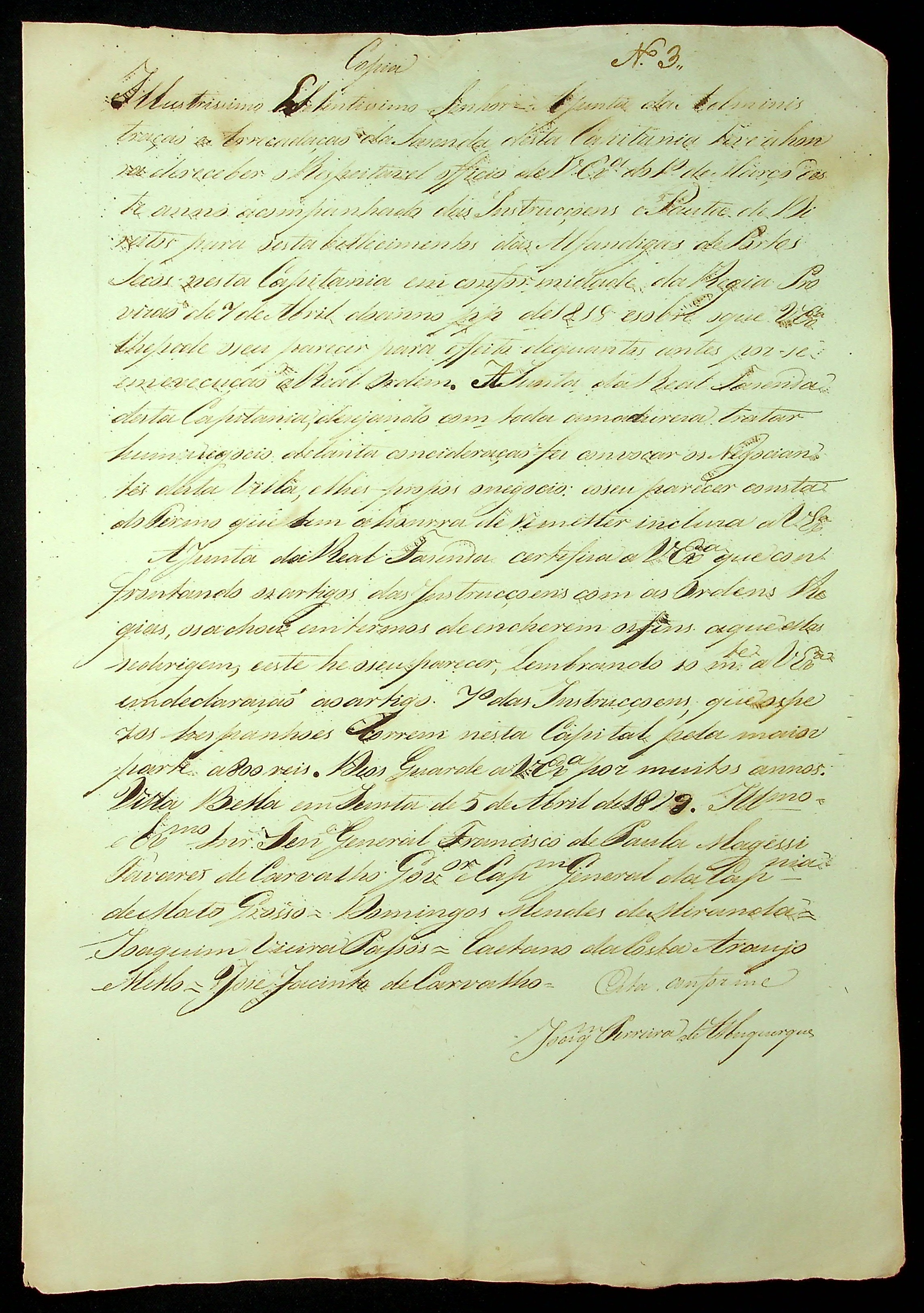 CARTA (conjunto de cópias) destinadas e emitidas pela Junta de Administração e Arrecadação da Real Fazenda da Capitania de Mato Grosso.