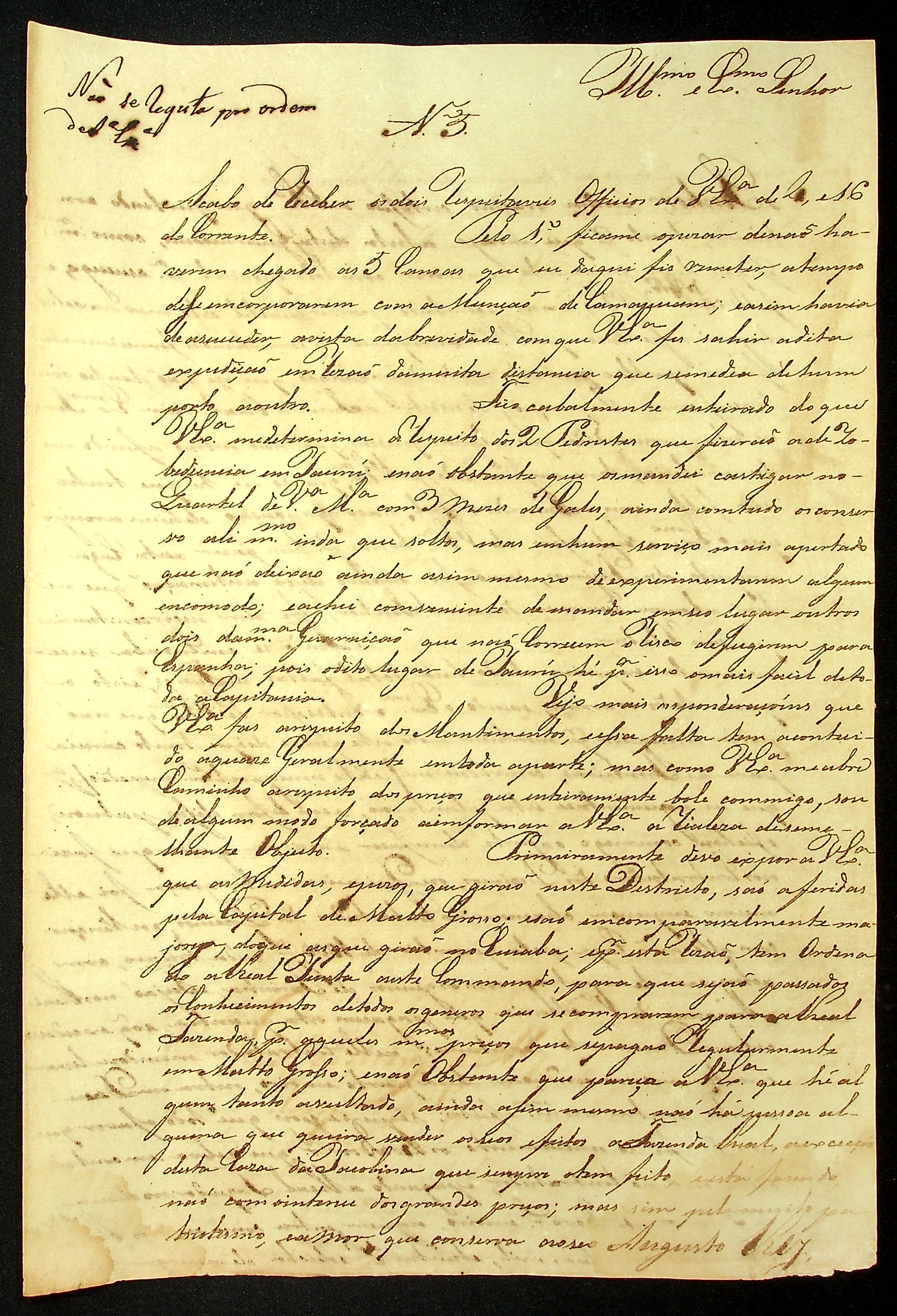 CARTA de João Pereira Leite ao [Governador e Capitão General da Capitania de Mato Grosso] Francisco de Paula Magessi Tavares de Carvalho.