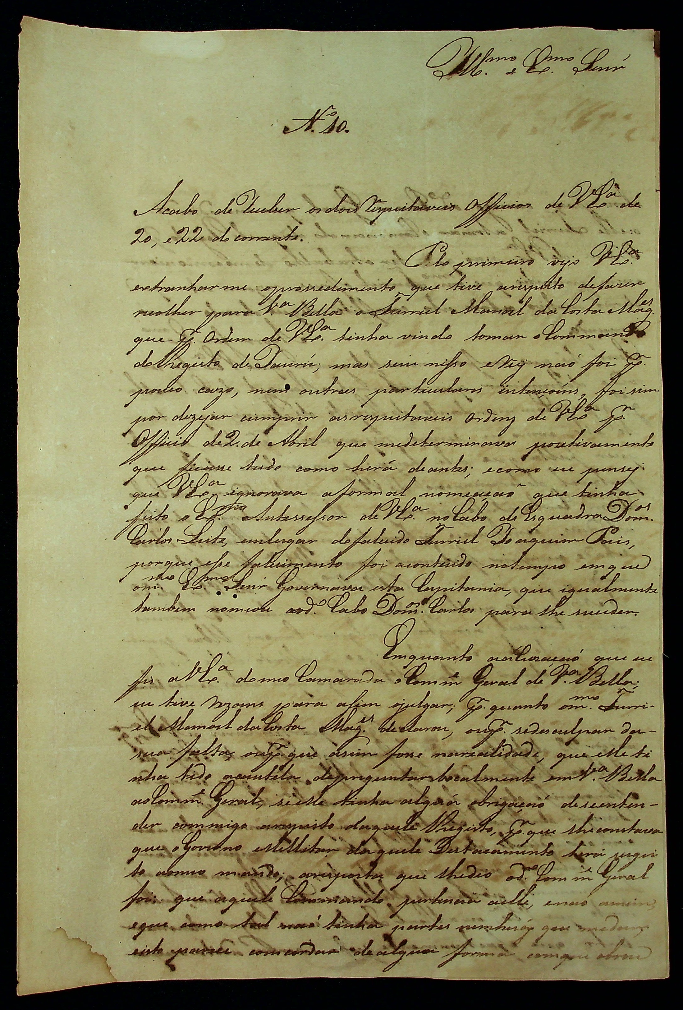 CARTA de João Pereira Leite ao [Governador e Capitão General da Capitania de Mato Grosso] Francisco de Paula Magessi Tavares de Carvalho.