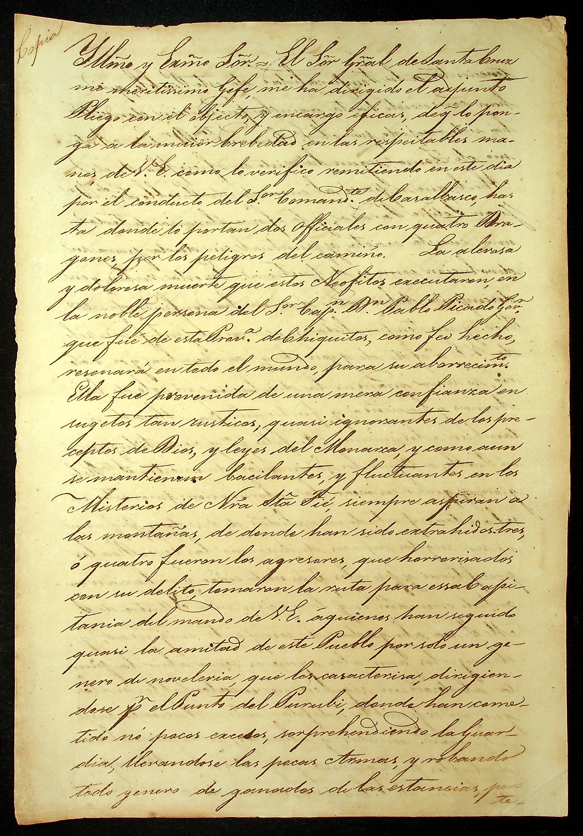 CARTA (cópia) de Sebastian Ramos ao [Governador e Capitão General da Capitania de Mato Grosso] Francisco de Paula Magessi Tavares de Carvalho.