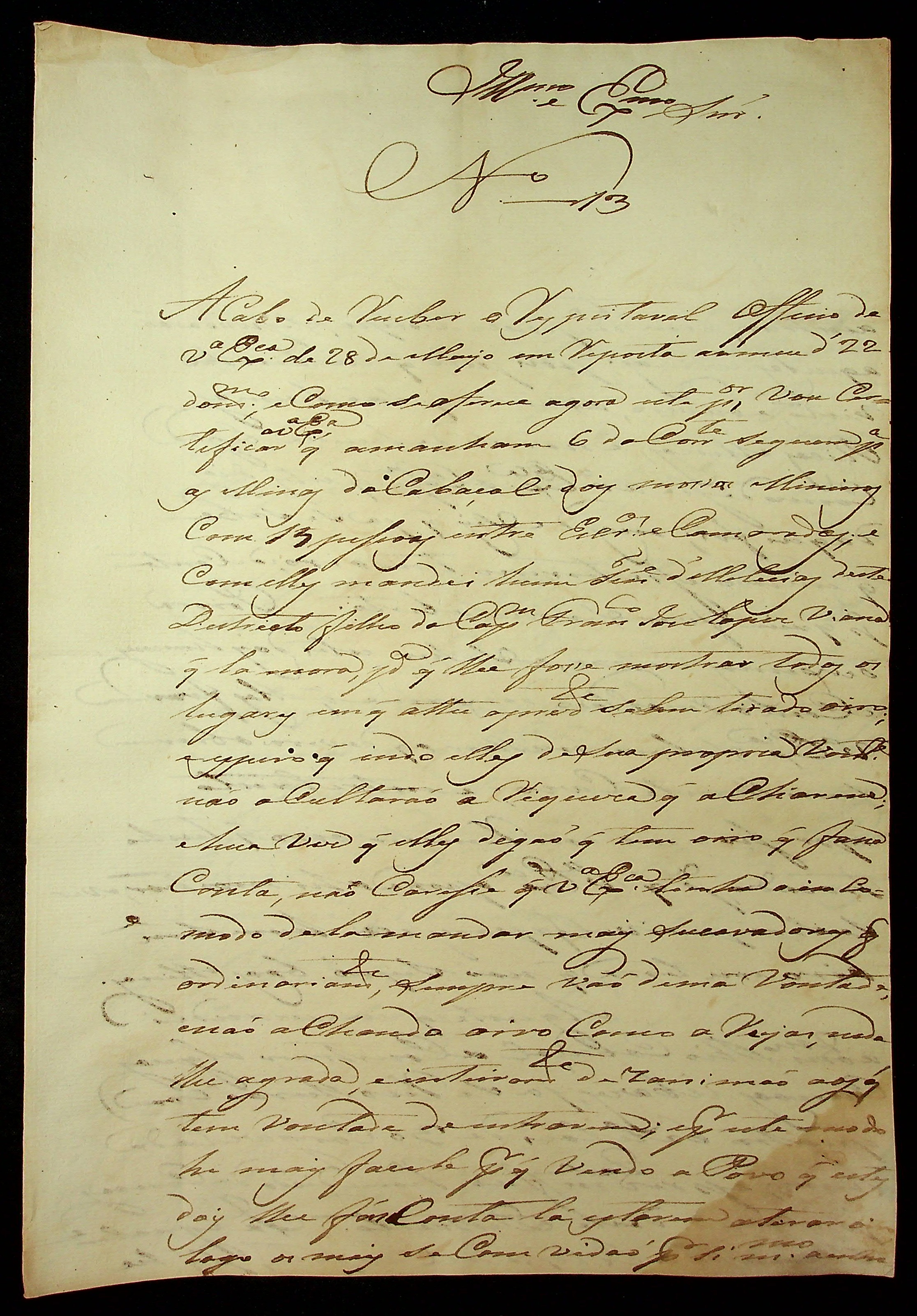 CARTA de João Pereira Leite ao [Governador e Capitão General da Capitania de Mato Grosso] Francisco de Paula Maggessi Tavares de Carvalho.
