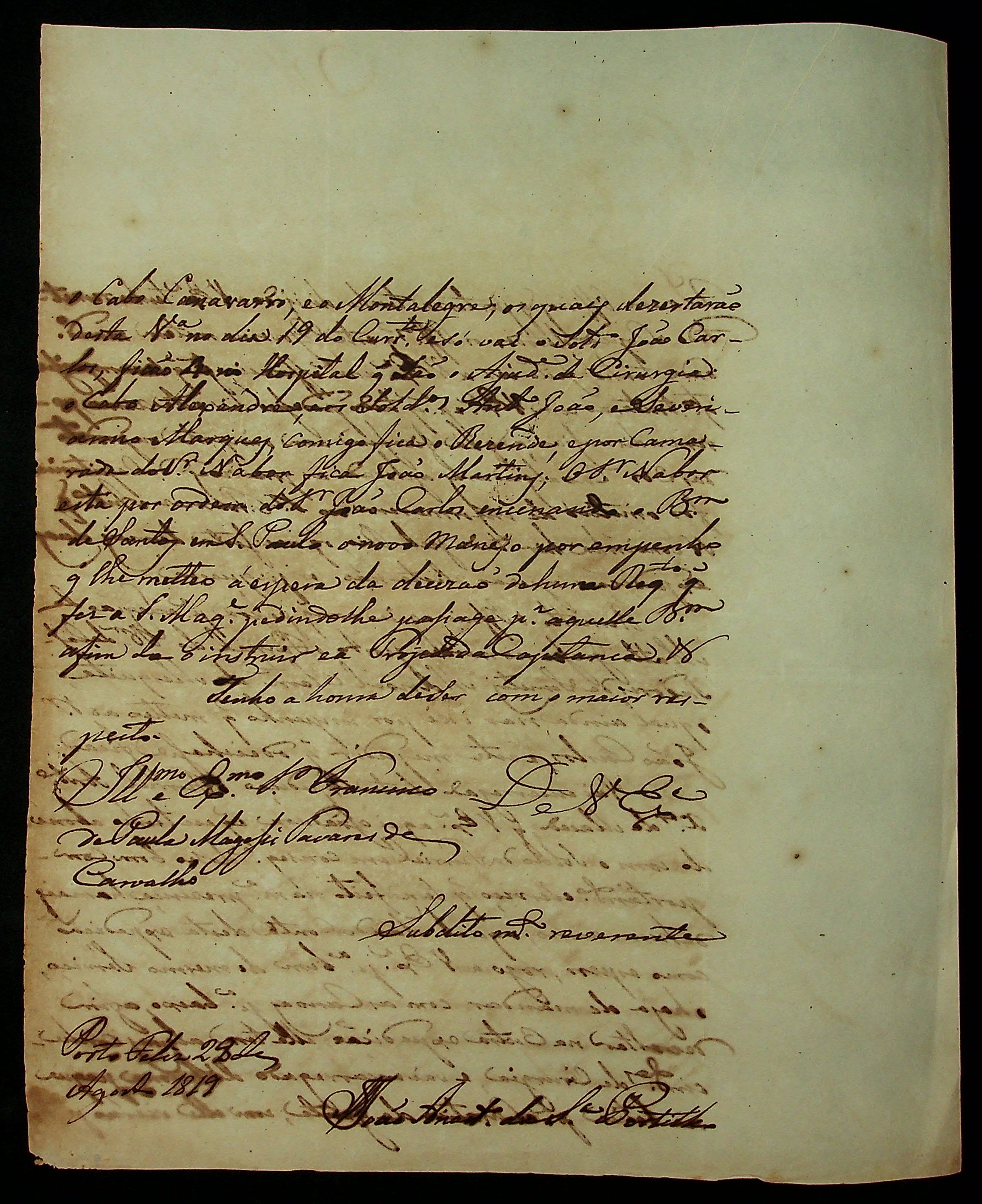 CARTA de João Anastácio de Souza da Silva Portilho ao [Governador e Capitão General da Capitania de Mato Grosso] Francisco de Paula Magessi Tavares de Carvalho.