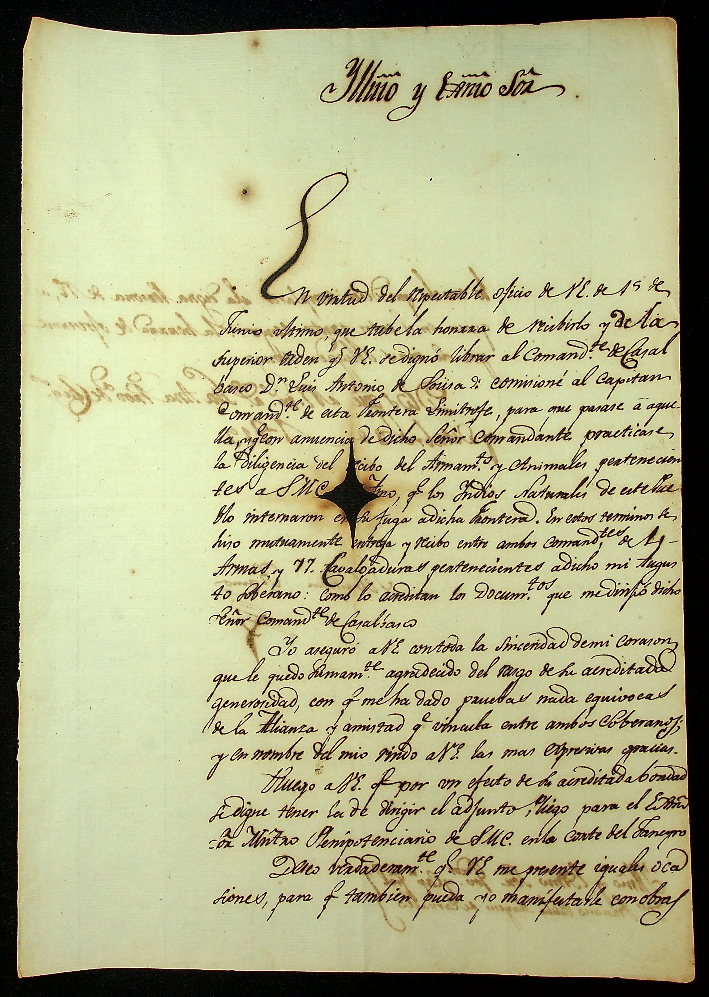 CARTA de Sebastian Ramos ao Governador e Capitão General da Capitania de Mato Grosso Francisco de Paula Maggessi Tavares de Carvalho.