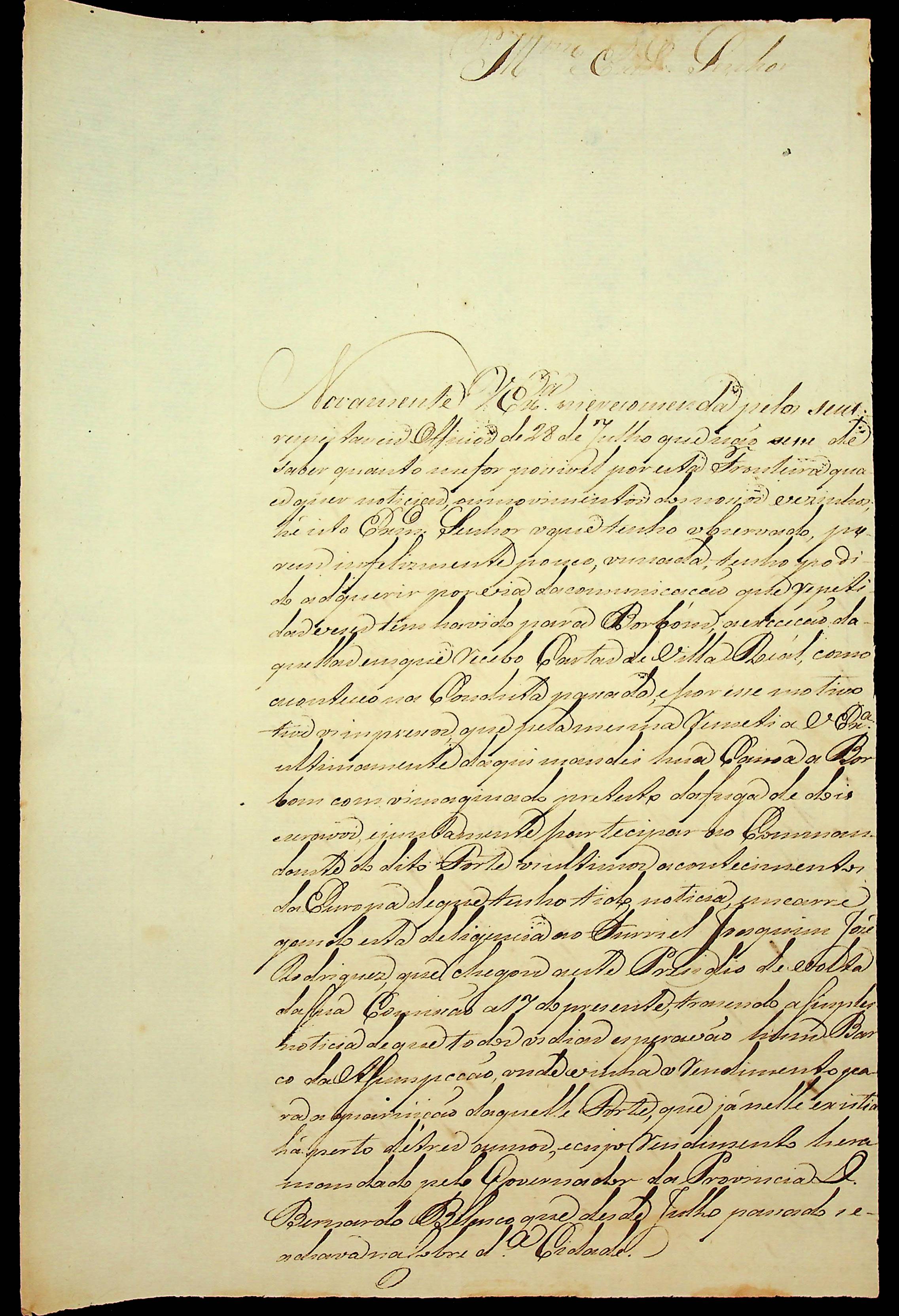 CARTA (incompleta) de [...] ao [Governador e Capitão General da Capitania de Mato Grosso].