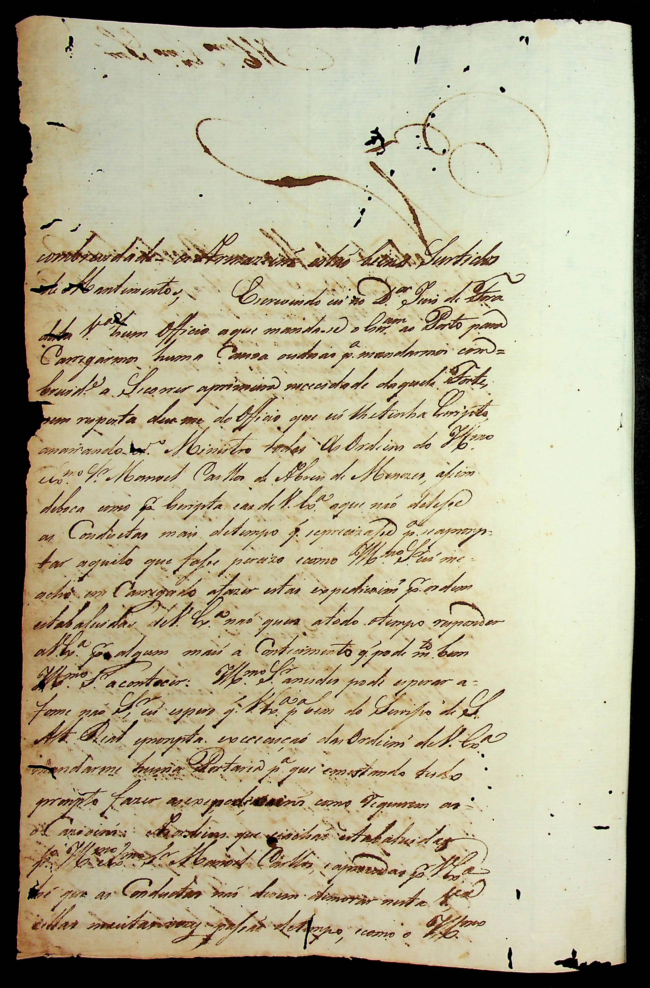 CARTA (incompleta) de [...] ao [Governador e Capitão General da Capitania de Mato Grosso].