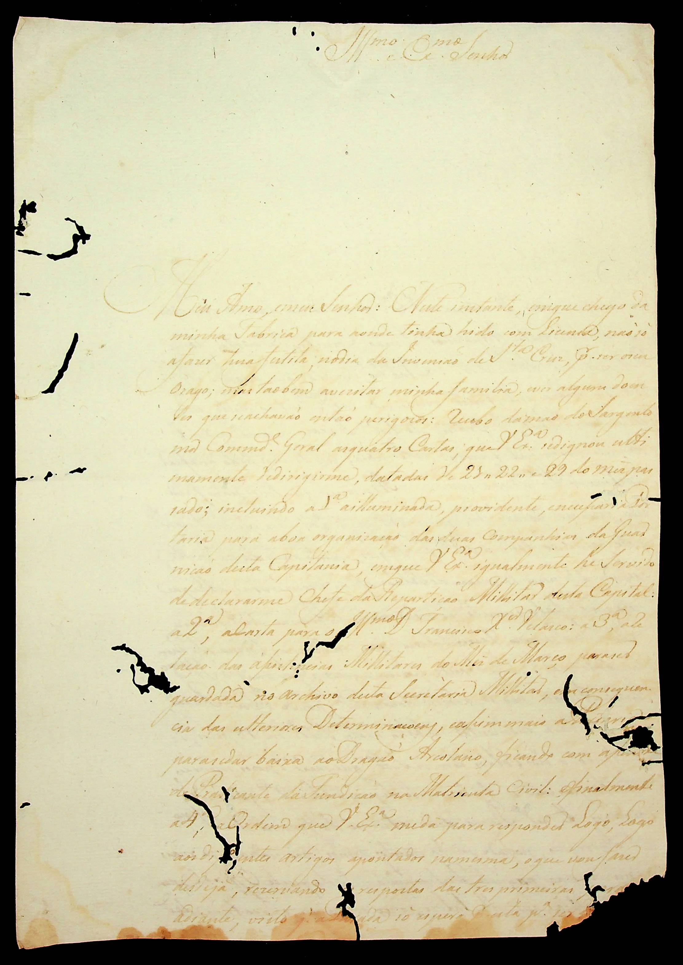 CARTA (incompleta) de [...] ao [Governador e Capitão General da Capitania de Mato Grosso].