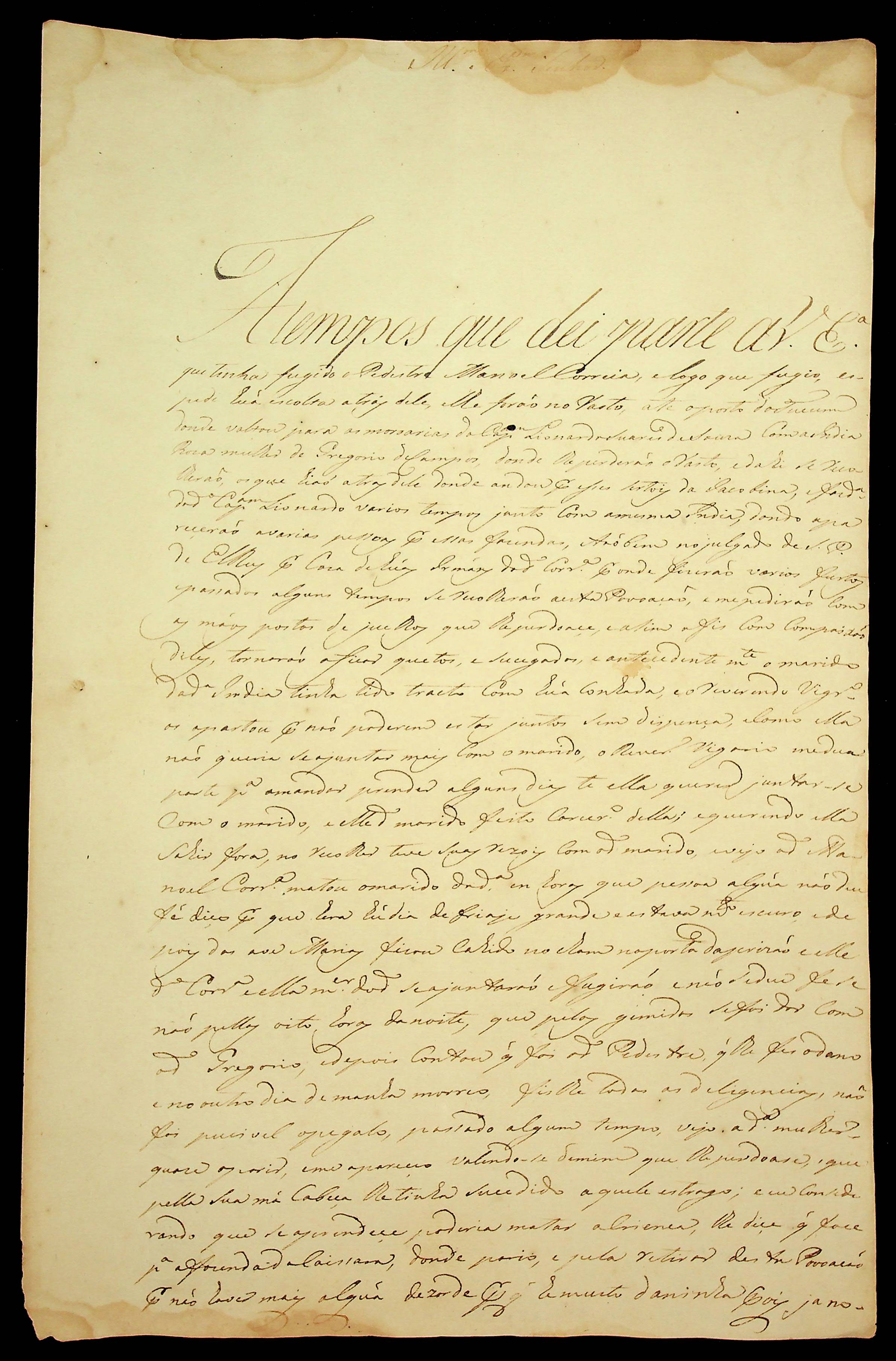 CARTA (incompleta) de [...] ao [Governador e Capitão General da Capitania de Mato Grosso].