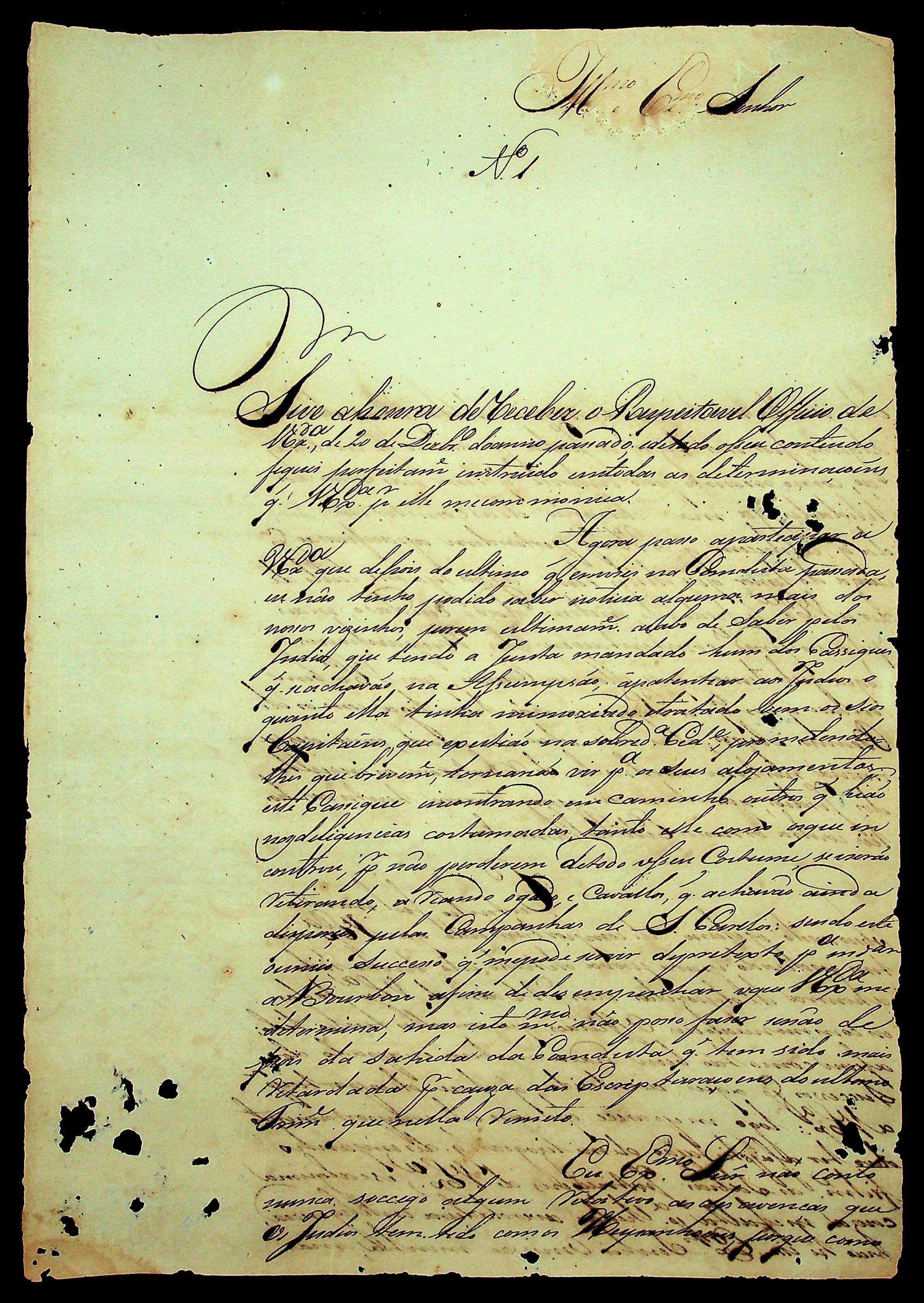 CARTA (incompleta) de [...] ao [Governador e Capitão General da Capitania de Mato Grosso].