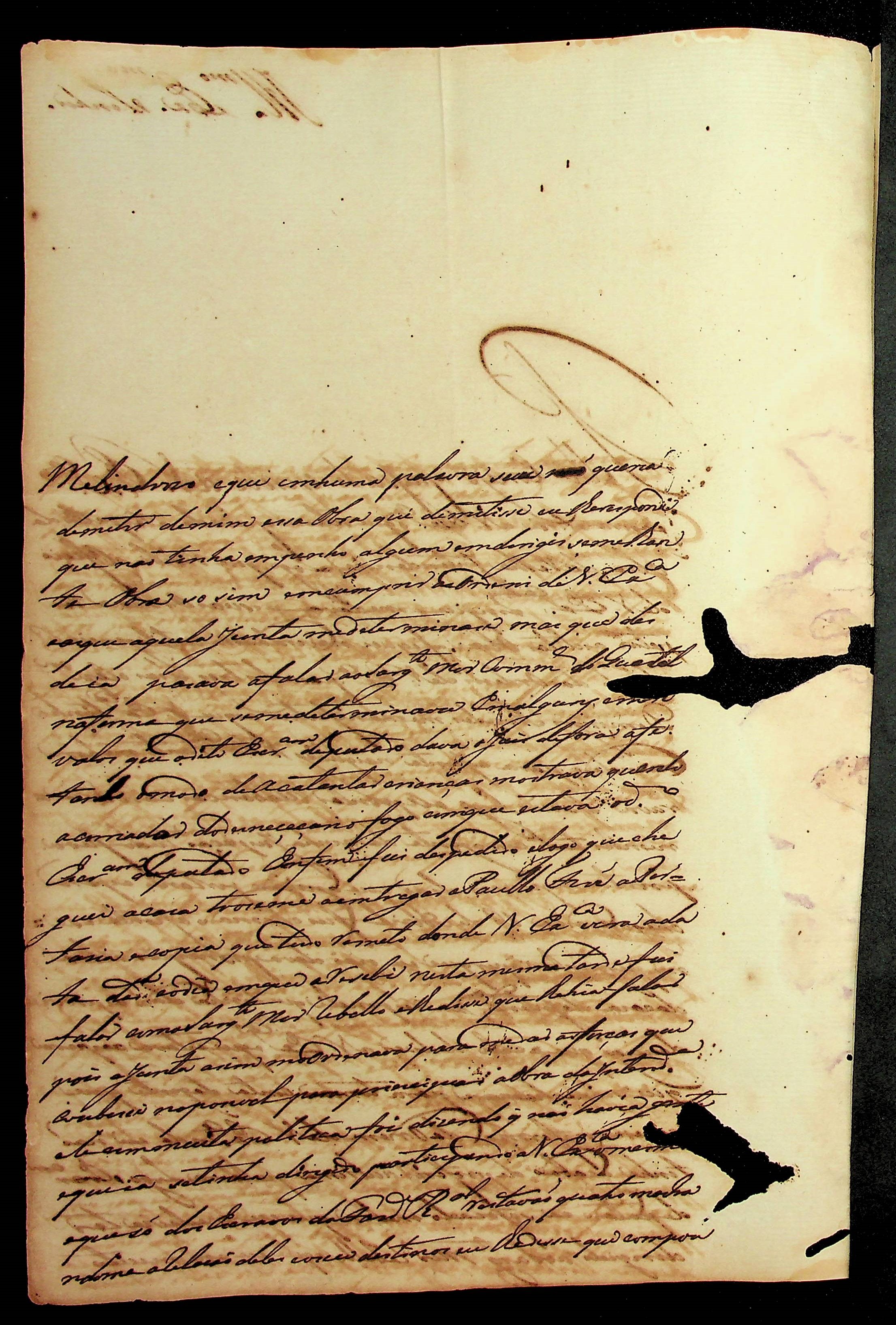CARTA (incompleta) de [...] ao [Governador e Capitão General da Capitania de Mato Grosso].