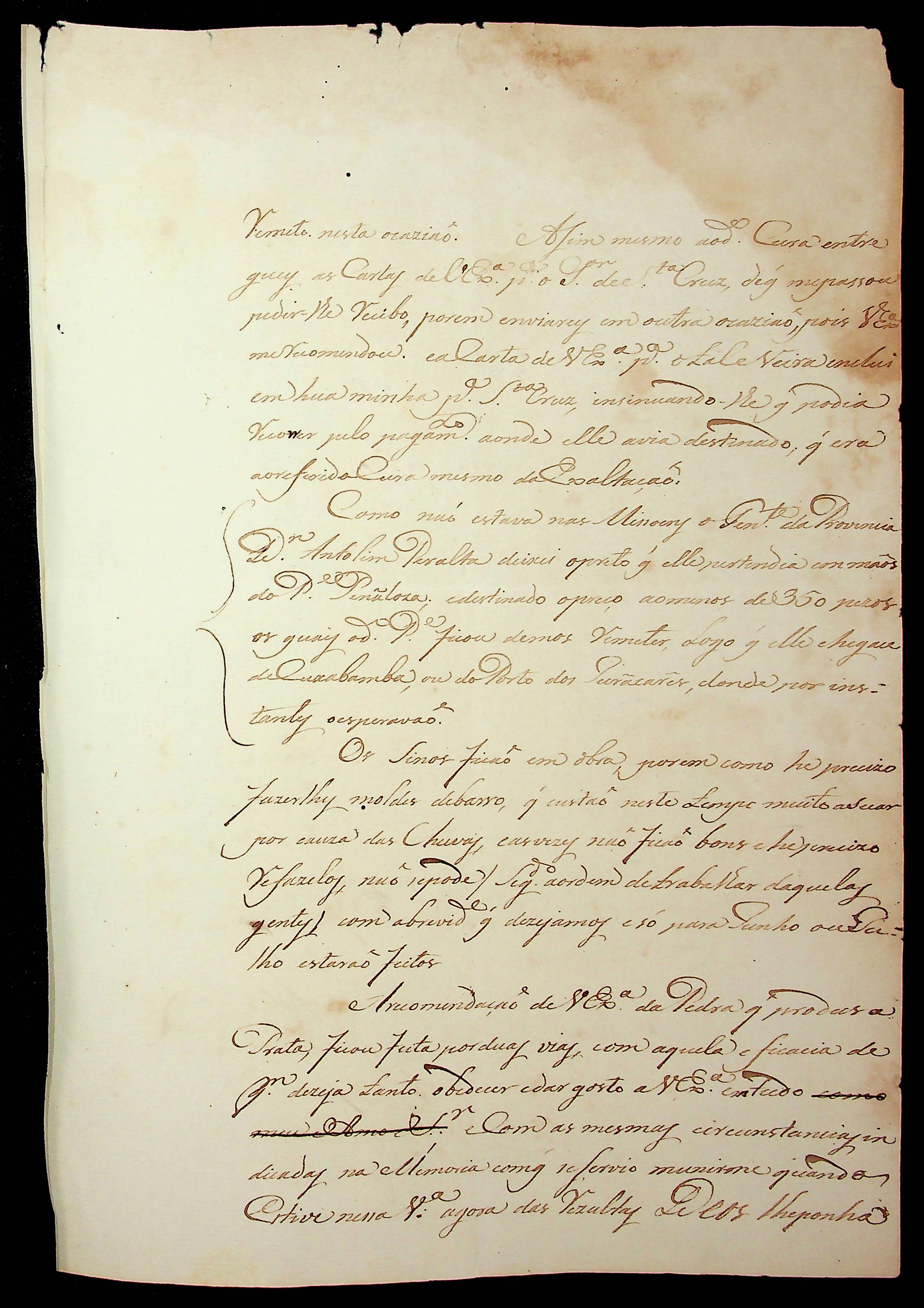 CARTA (incompleta) de [...] ao [Governador e Capitão General da Capitania de Mato Grosso].