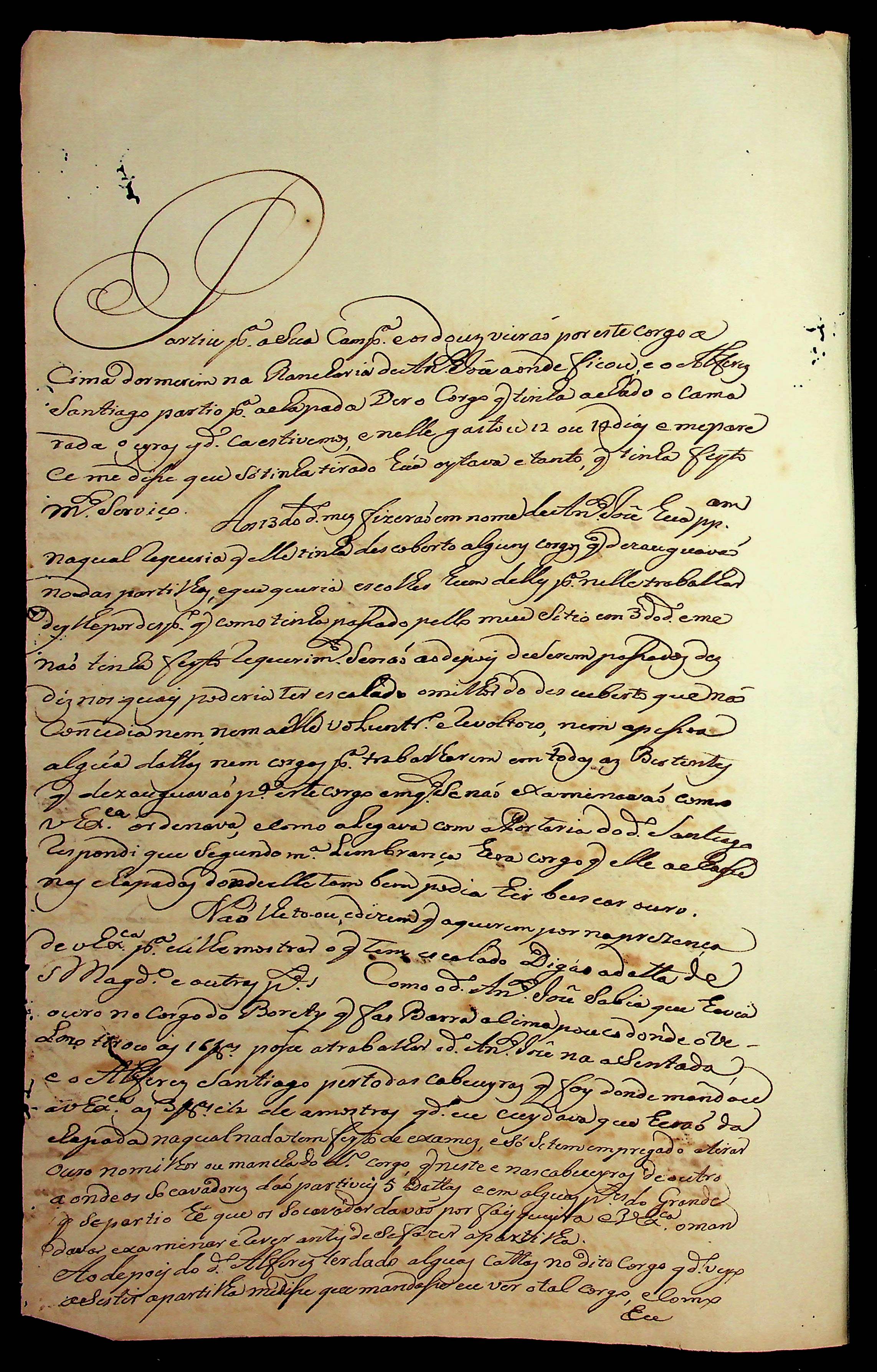 CARTA (incompleta) de [...] ao [Governador e Capitão General da Capitania de Mato Grosso].