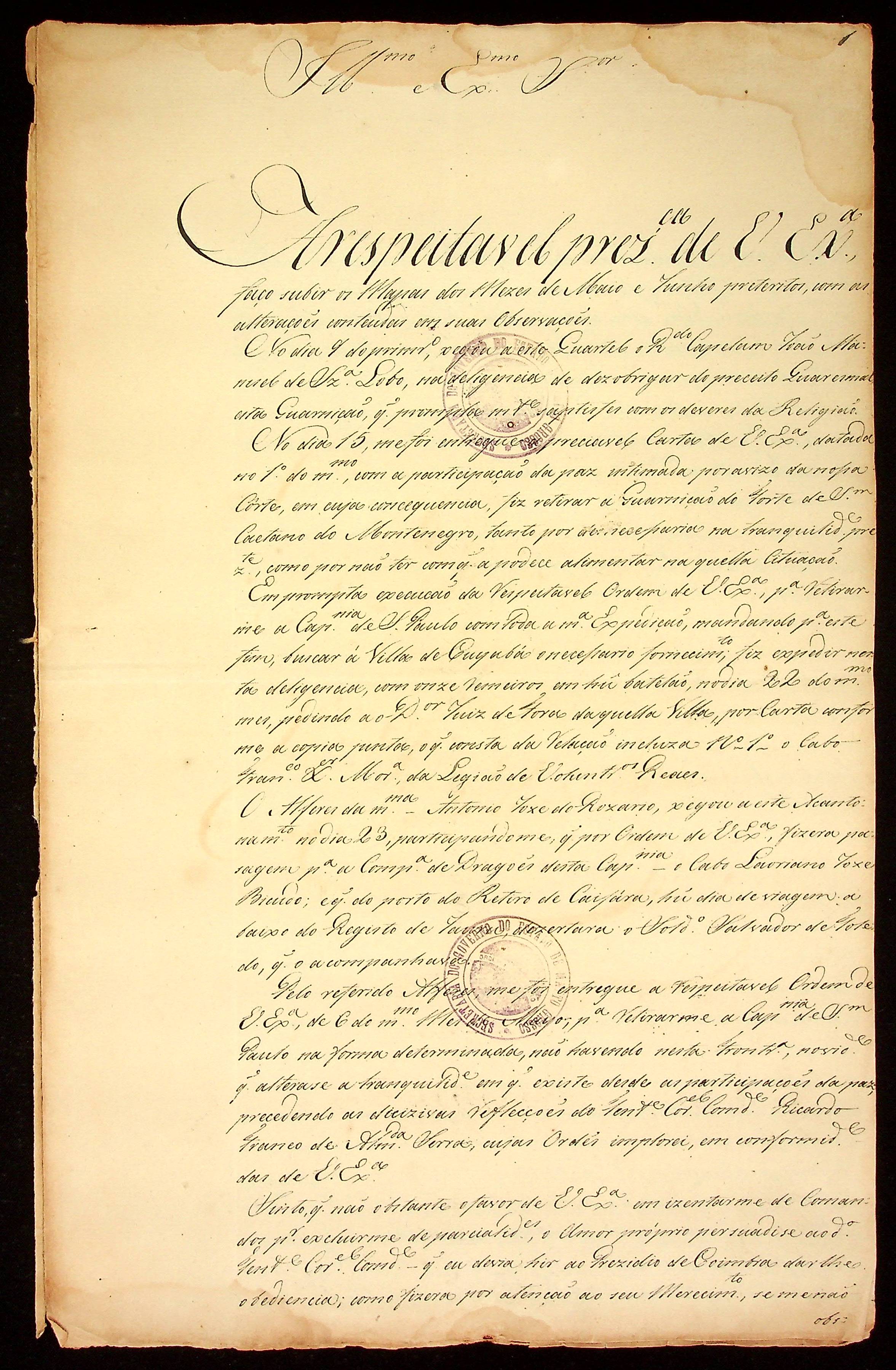 CARTA do Tenente Coronel Comissário Candido Xavier de Almeida Souza para o Governador e Capitão General da Capitania de Mato Grosso Caetano Pinto de Miranda e Montenegro.