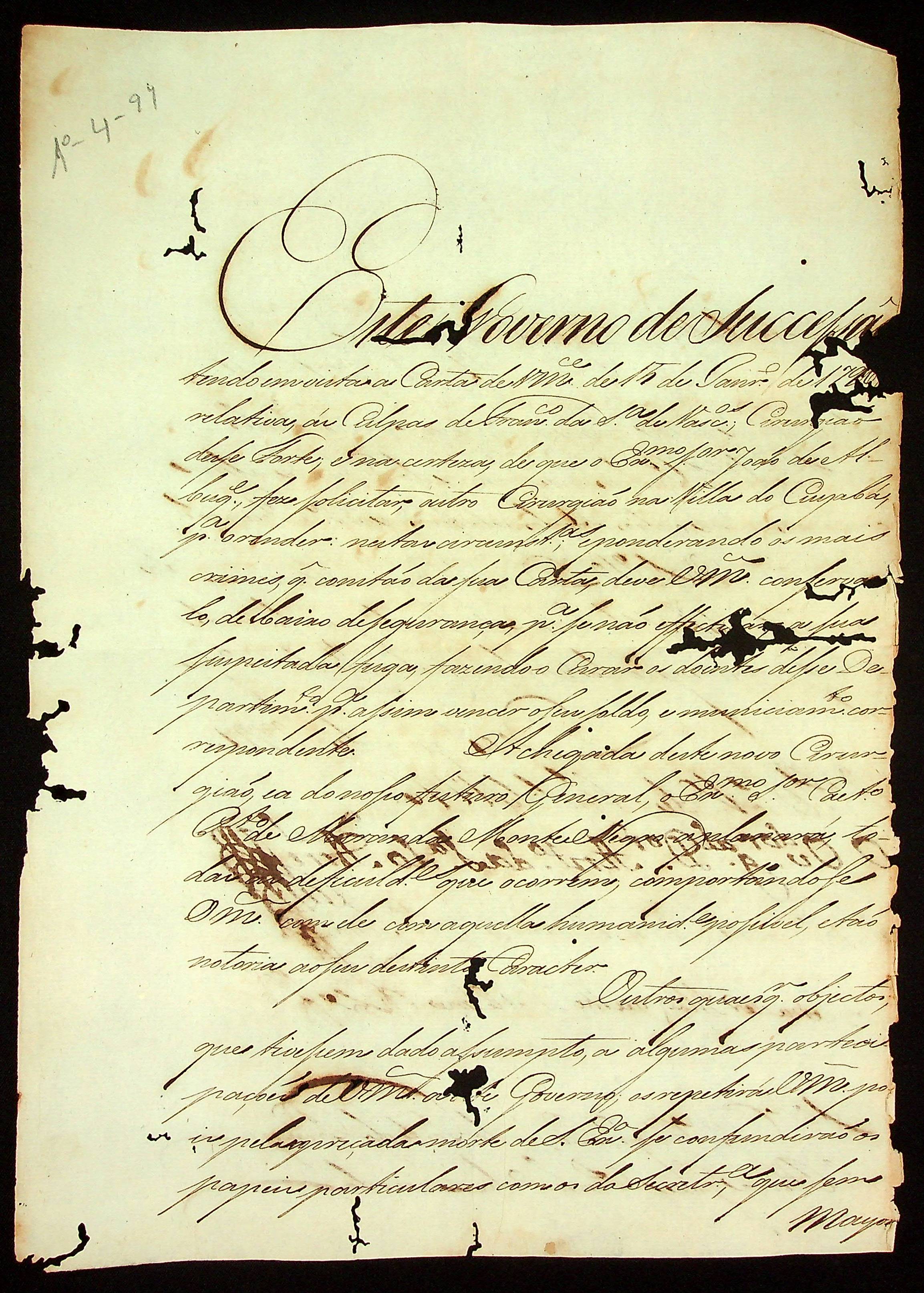 CARTA da [Primeira Junta Governativa da Capitania de Mato Grosso] ao Capitão-Engenheiro e Comandante do Forte Príncipe da Beira José Pinheiro de Lacerda.