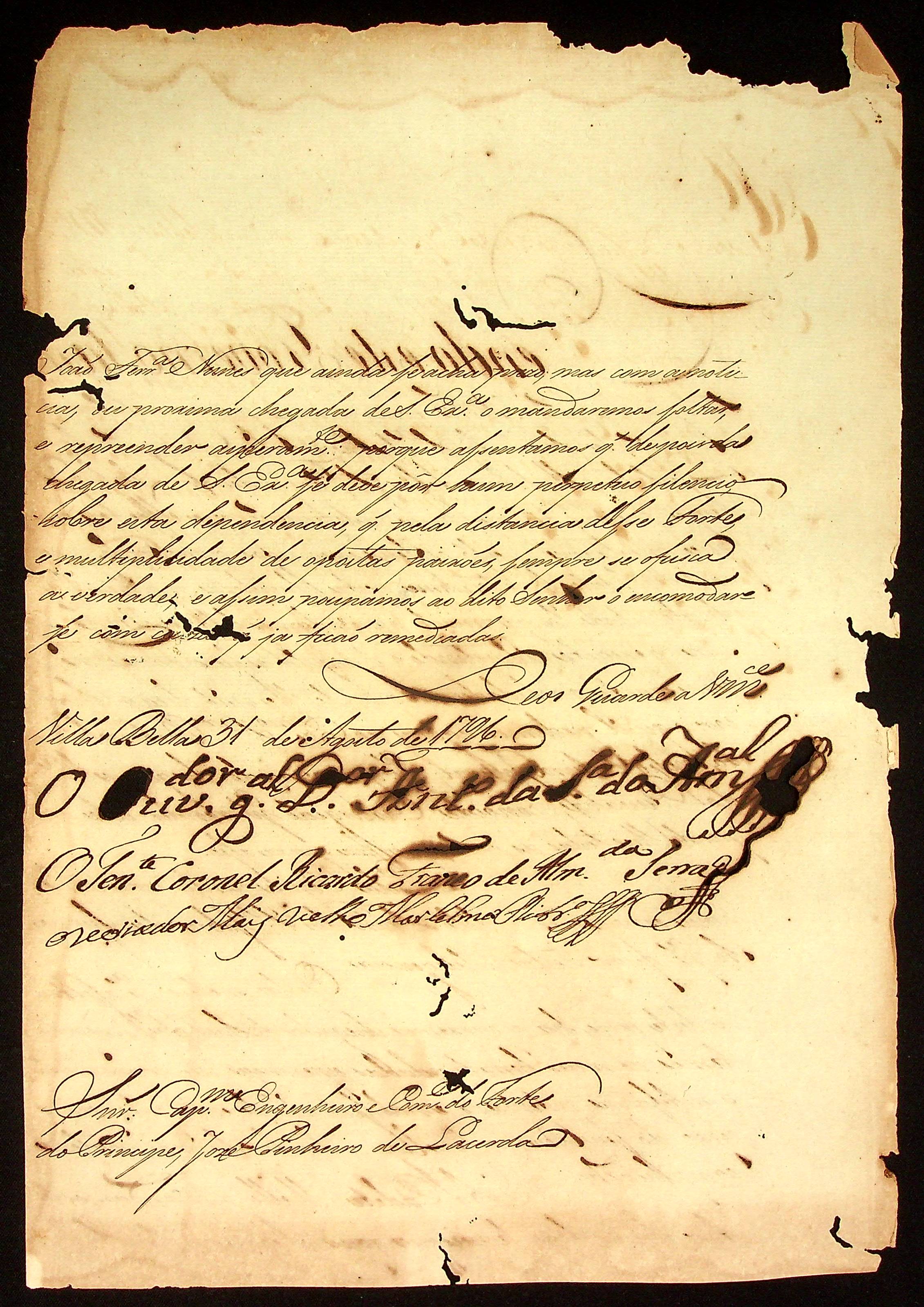 CARTA da [Primeira Junta Governativa da Capitania de Mato Grosso] ao Capitão Engenheiro Comandante do Forte do Príncipe da Beira José Pinheiro de Lacerda.