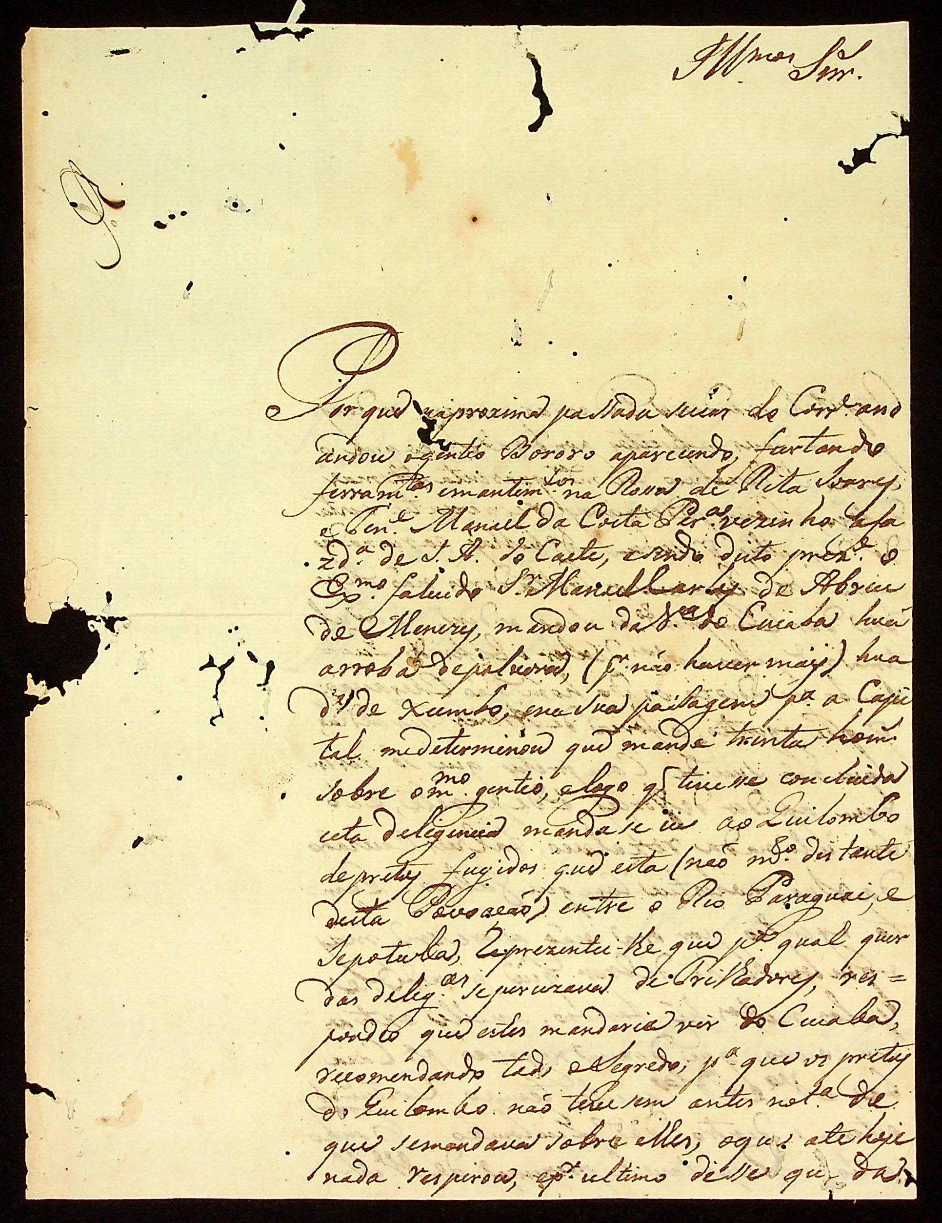 CARTA de Manoel Gonçalves Neves à [Terceira Junta Governativa da Capitania de Mato Grosso].